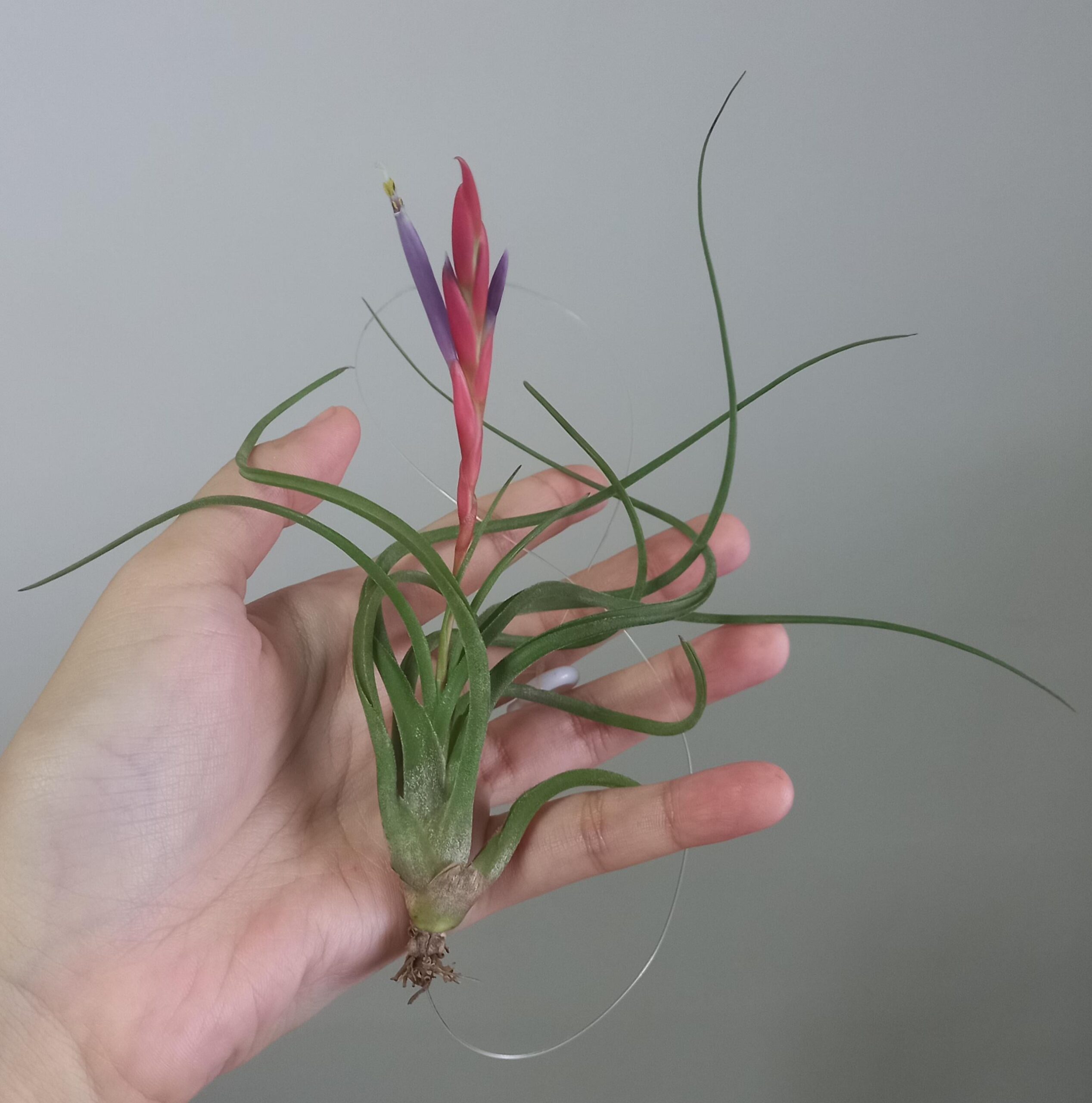 Hi – newb to airplants, I've had this for a couple months now, it bloomed last month and since sent out a pup. I'm unable to ID it, Google Lens keeps telling me it's a Medusa but it doesn't have a (noticeably) bulbous base; Baileyi have purple inflorescence, not red. Help appreciated, thank you!