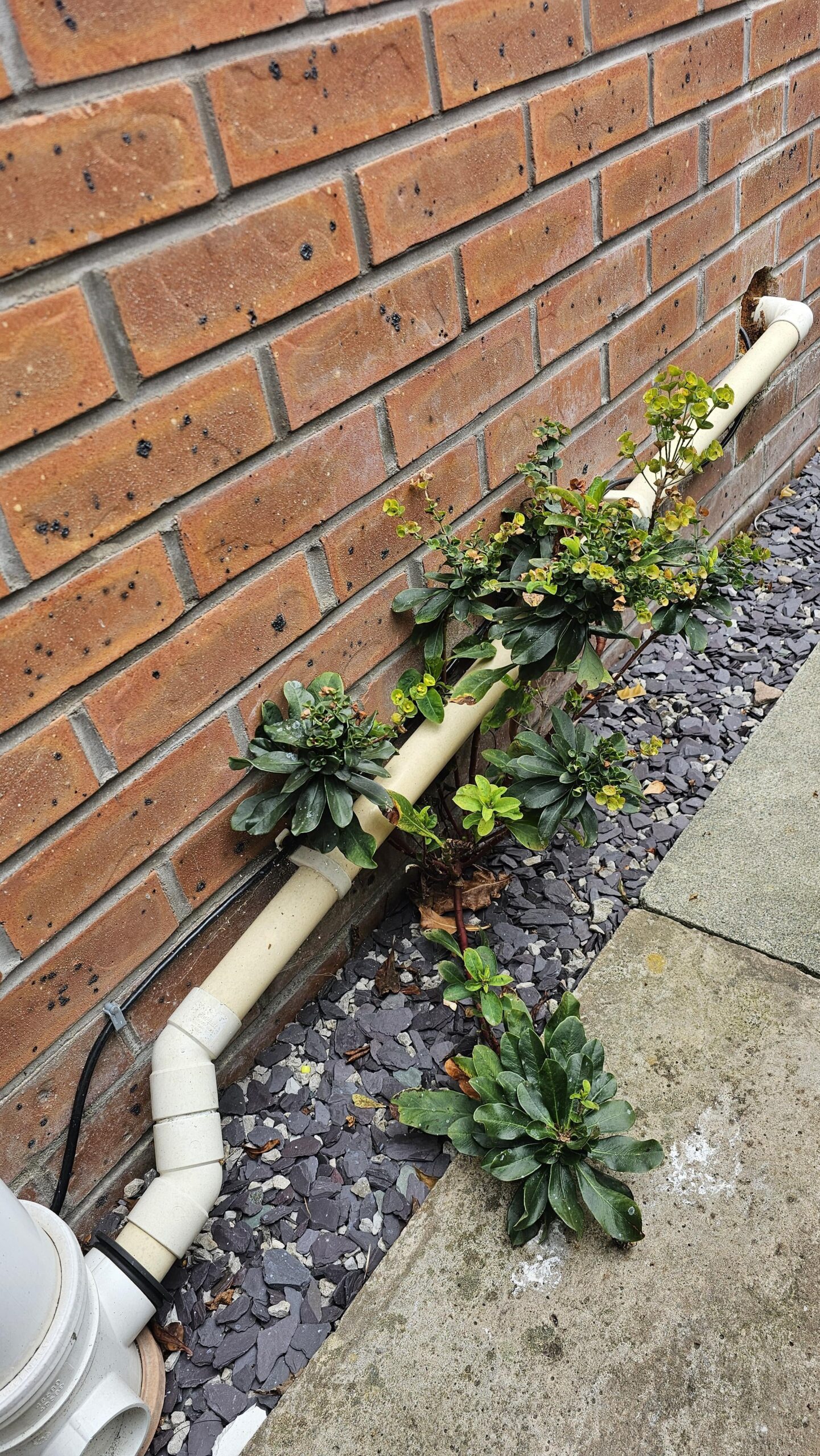 It’s a euphorbia they can get quite big so it’s not in the best spot. I’d remove it or move it.