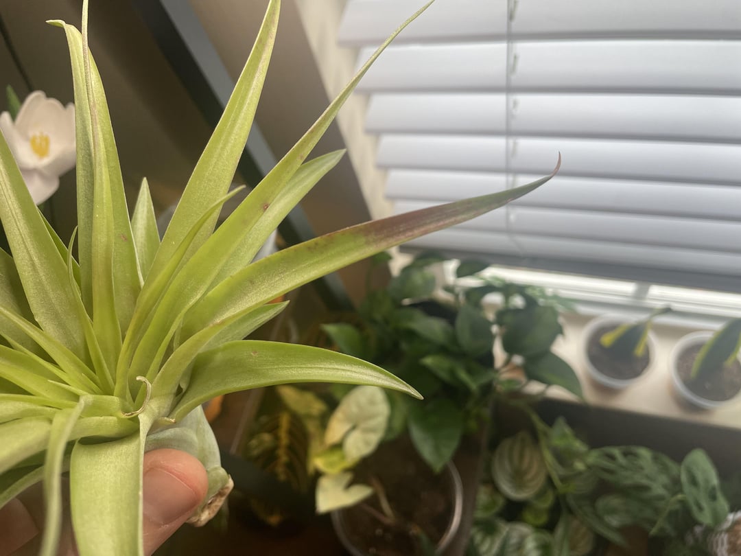 Slight browning/ reddish color becoming a bit more prominent since I’ve bought this guy about 2-1/2 months ago. Submerge in rainwater for a few hours every 2 weeks or so. I have a small fan I use to completely dry out. Is the slight color change bad what can I do differently? Last photo is where she chills at.