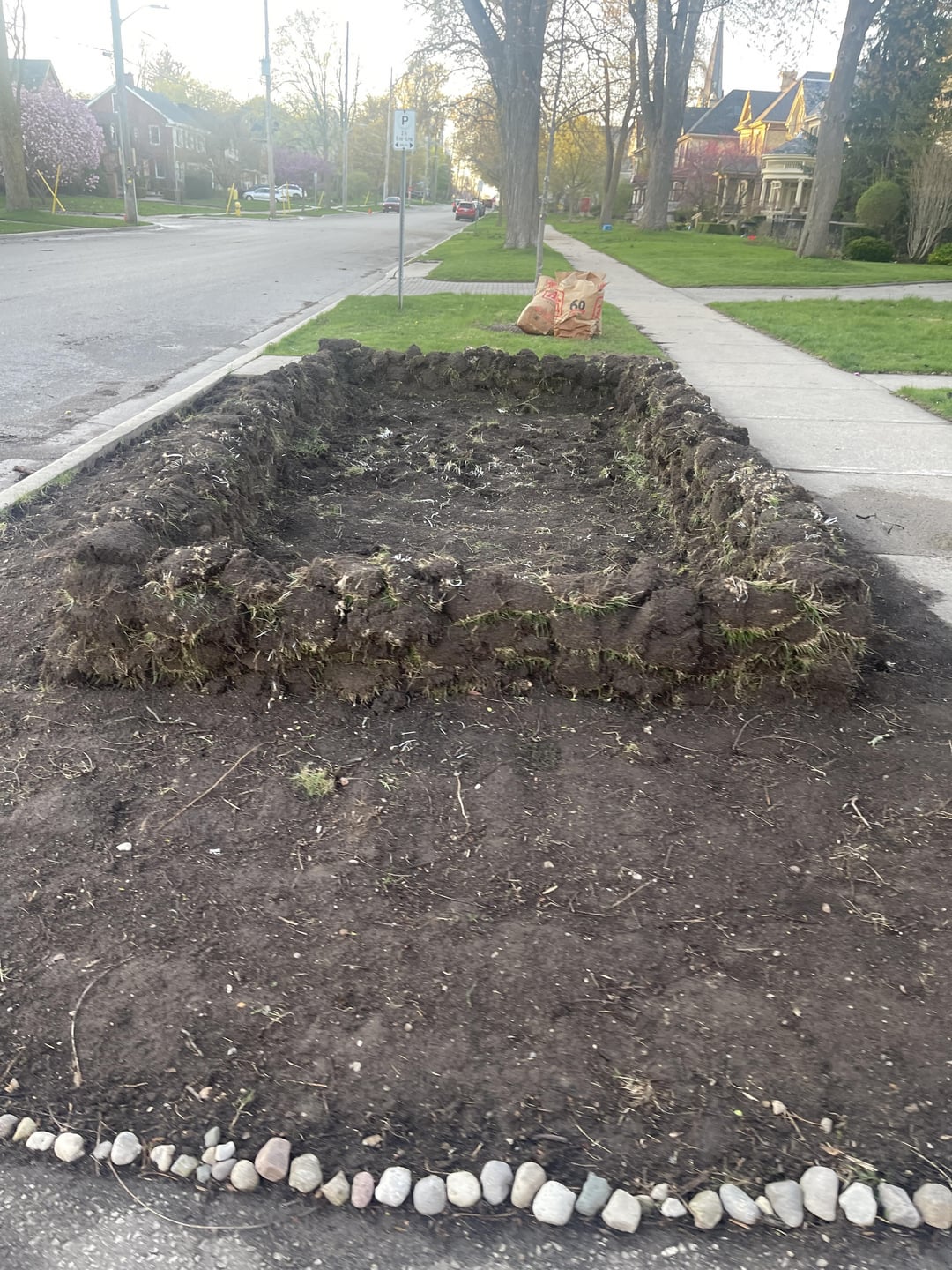 It might be the start of a raised garden bed. If you see logs and branches on top of cardboard in it, than that’s what’s going on.