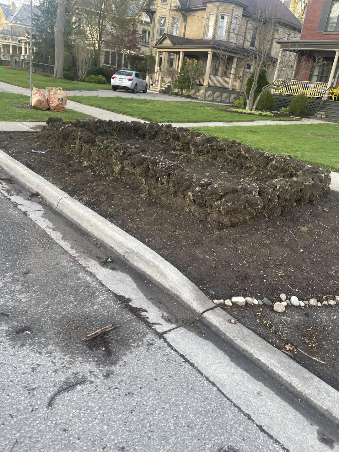 Looks like they piled the existing grass into those sod stacks and have or will spread some soil amendments and replace the sod.