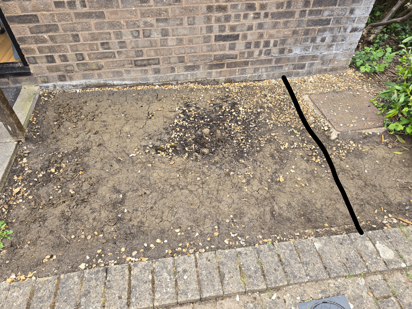There's also a nice, big hole in the centre where the local cats have been shttng. At least they've softened up the soil there…. maybe they'd like to dig up the rest?!