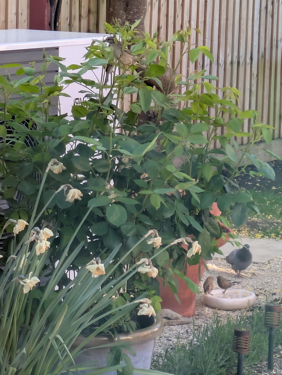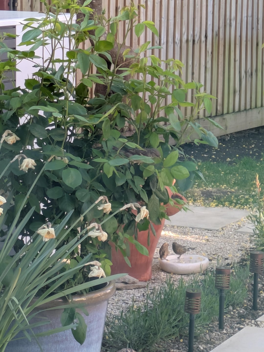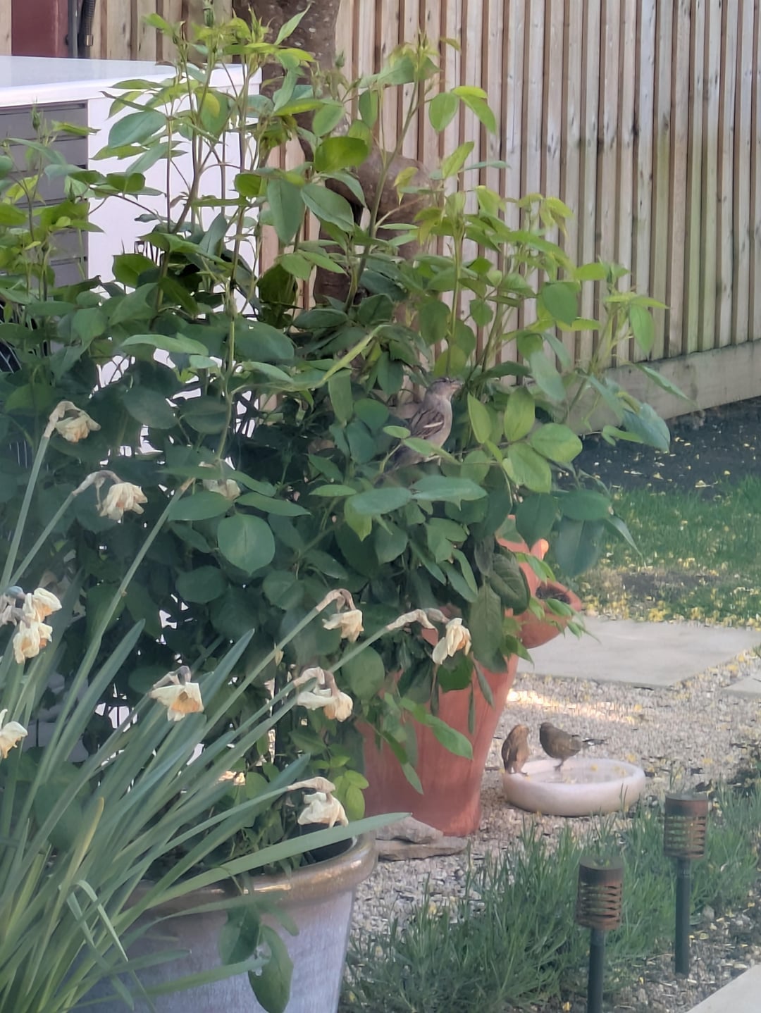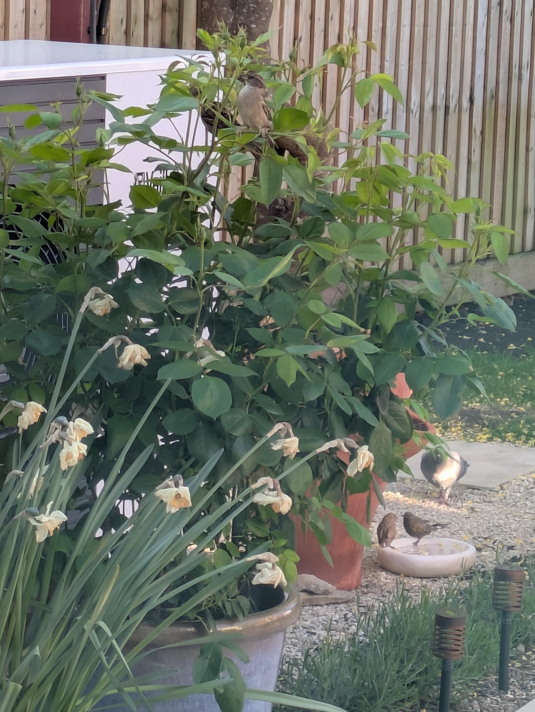 Someone posted that they had an aphid problem on their Rose. I commented that spraying is the wrong thing to do. Here's my evidence, had 5 sparrows in this rose eating aphids very happily for the last hour.