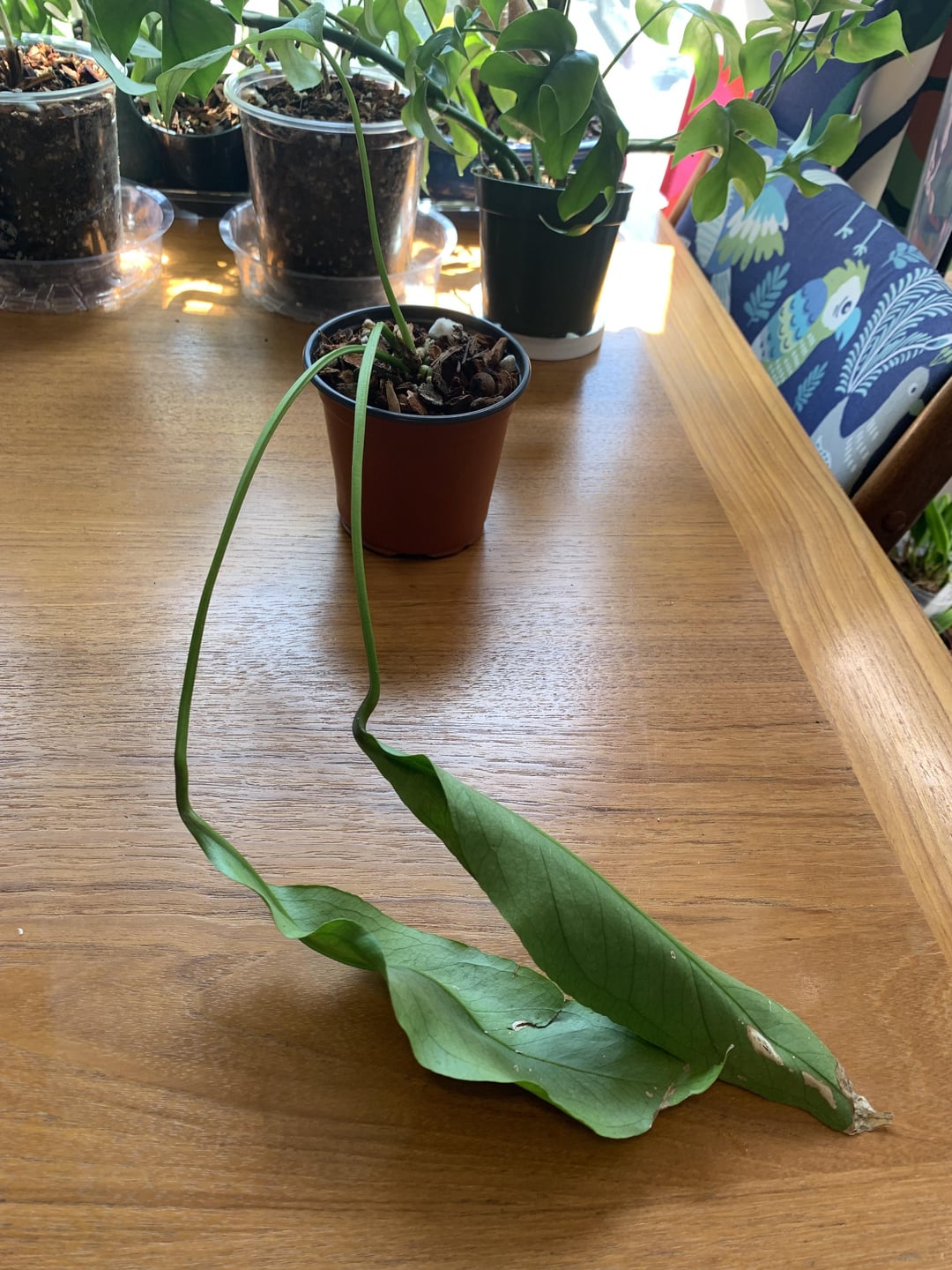 Hi, I’m one of those people who got scammed by TheSunshineGreens on Etsy. In addition to not sending part of my order, postponing shipping for 3 months, and having the most obtuse approach to communication, everything was either unlabeled or was “labeled” with doctor-on-a-trampoline-bad handwriting that was mostly indecipherable. I ordered a Philodendron spiritus-sancti (first 3 photos) and an Anthurium wendlingeri (second 3 photos), and the squiggles on the paper wrapping indicate these should be them. Did I get what I ordered? If I got scammed, what plants do I have? Thanks in advance!