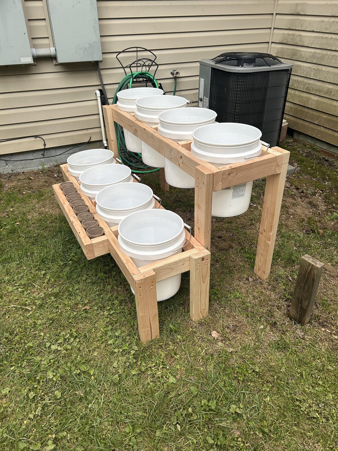Oh and fill those buckets to the very top with soil. I saw comments talking about mulch. Mulch is great to help keep the soil wet. If you fill to the top with soil, it will sink down as you water. Over time, you’ll have enough room to add mulch, and by that time your plants should be big enough to actually benefit from that water retention rather than drown in it.
