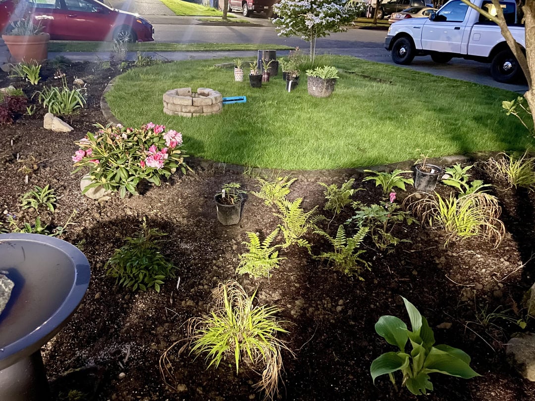 Started laying out the bed around the dogwood, my neighbors are so perplexed after digging the first one out then planting over the last month😅 it will be amazing (hope) & so good for our bees and other pollinators 🤗 eventual goal is a path between beds with stepping spots to caretake.