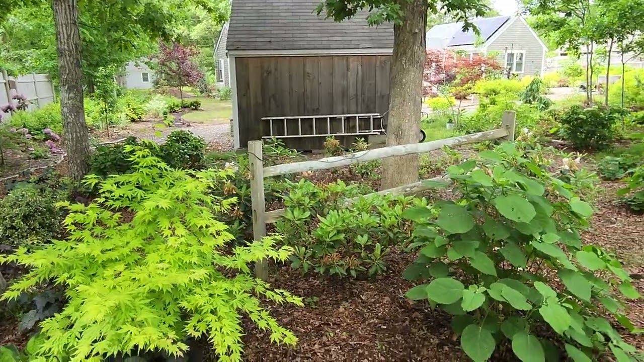 All right, a few more Japanese maples to identify. This is our first ghost that we just got last year, so it’s fairly small. And it has come out in a fashion that is all of that it is supposed to be in a first ghost. Has great variegation. Came out kind of in the same color it is now. I’m trying to get a good bright look at it. In the same color that it is now being a limeier green with dark green variegation very similar to like a peaches and cream Japanese maple as palatum and this one is supposedly very slow growing it’s the first one of the ghost series which is called why it’s called first ghost and they say over you know 10 years or 12 years it might get to 6 or 7 feet tall and four or 5 ft wide so for now we have it in the small space and stands out nicely again where you can walk by and see the variegation up close instead of having it far back so you can really appreciate the qualities of it. Uh this is a rainbow acer pomatum Japanese maple which I like. This is a small one that we recently got which has the bright uh the bright red over the more dark maroon type leaves. Uh this one supposedly is fairly slow growing as a lot of variegated ones are. you know, getting to six or eight or 10 feet over 15 years, maybe. We have it in a pot, so I’m assuming it’s going to probably grow a lot slower. I actually like it better than the Lilian’s Jewel. I like the contrast of the colors a little better, which Lilian’s Jewel is similar, but um I hadn’t had really good luck with it in general, just keeping it alive through the winters. Uh this one they say too if um if a branch just turns to all the dark color as it starts to get larger, it can be a reversion. So you should just cut that off because you want to promote the higher color. It can have a dark color leaf. But if a whole branch starts to turn just the dark leaf color, then it should be cut off as a reversion because you want to keep the the quality of what the tree is, which is the mix of colors. Um, this is an Aaran, which is very similar to an arido nishki. So, the aro nishki is a little more common. You’ll see that at good garden centers. So, this can get, you know, 10, 12, 15t tall over a long period of time and has great variegation on it. Comes out like this in the spring. Seems like the new spring growth comes out a little greener and then as it pushes out further as a little time goes by, all the tips go to this great variegation. And they also say if it turns a little more green over time, a way to promote the more variegated pink white growth is to just prune it up a little bit. So trees that maybe haven’t turned this color and if you know it is an arto nishki and it’s been that way for years and it has just been green that if you kind of take it to it a little bit with some pruning then it will revive it and come out with all these great colors and contrasts. So thean which is a new this is a new obvious one for us. It’s only about 15 in tall. The Alaran as a little time goes by will be much more variegated than Neorito Nishki. So that’s why we wanted to give it a try. So you know now as a small one it has it looks very similar but as it starts to mature the majority of all the leaves are going to go to this very pink and white variegation you know which is why we got it. Let me see. We have got an orange dream back here in the shade. Accep orange dream which comes out very orangey bright in April when nothing else is out. So it stands out big time against everything else that’s brown. So it’s a little in danger of getting burned by the frost. So, we have to be careful with that. But after it has that initial color, it fades after about a month, month and a half to a more chartreuse, which is great cuz we’re back in the total shade back here. Total high shade. And this one can get to that 8 to 10 foot tall in 10 or 15 years. It’s been very slow growing for us because we’ve moved it four different times between being in the ground a couple times and then back to a pot and then back to the ground and then back here. So, um, it’s been a little slow growing, but it stands out. The chartreuse leaf stays for the whole summer and then gets a little orangey yellow in the fall. I don’t think it’s mature enough for us to really get the great color out of it yet. And plus, we’ve moved it so many times. But in the uh in the shade, it really stands out back here against the darker green hydrangeanger leaves or the roodendrrons that we have back or just the general fact that it’s kind of in the shade. So typical asop palmatum type leaf shape just a nice just a really nice tree. Um got some small things. This is we go. I don’t know which one I want to do first. This is an Abigail Rose Japanese maple. In one of the earlier videos I showed, I showed the eye candy and I referenced the fact that it is a relative of higasyama and this is also the case. So in this one like the eye candy was maturing a little more where it was losing it pink but it had its white variegation. This still shows its really pinkish color coming out in the spring. is very slow growing dwarf is why we put it back here with the hanoki grass so it really has a show of its own back here it’s in the total shade it’s been hold and it gets variegated as it starts to age and lose its pink as the summer goes on like down here gets a little more green just with the white variegation on it but um uh it’s just great back here and it’s just going to be a small tree it might get this six feet over a long period of time, 10, 15 years at least, and it’s held its color really well in the shade. So, we’ll probably keep it here. It’s a nice spot right off the path again where you can get a good up close look to it. Here we have a sister ghost. And the sister ghost uh like the first ghost I showed has variegated leaves but much more highly variegated than the first ghost. So it’s got the dark green veining to it. It’s