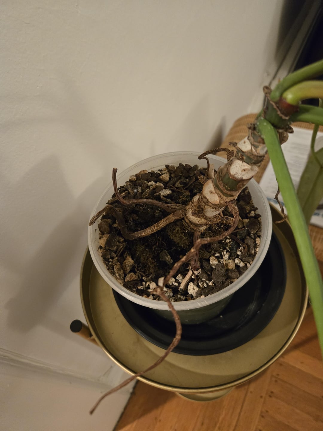 Also, would it be a good idea to repot in a taller pot and bury the now exposed stem?