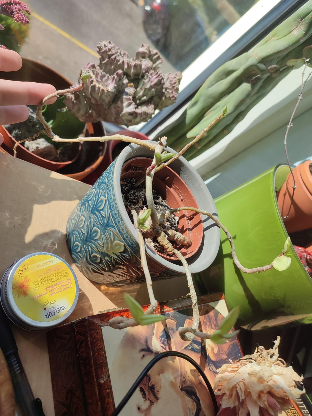 The plant in 1, 2, and 3 looks like a succulent that was cut back and then grew etiolated