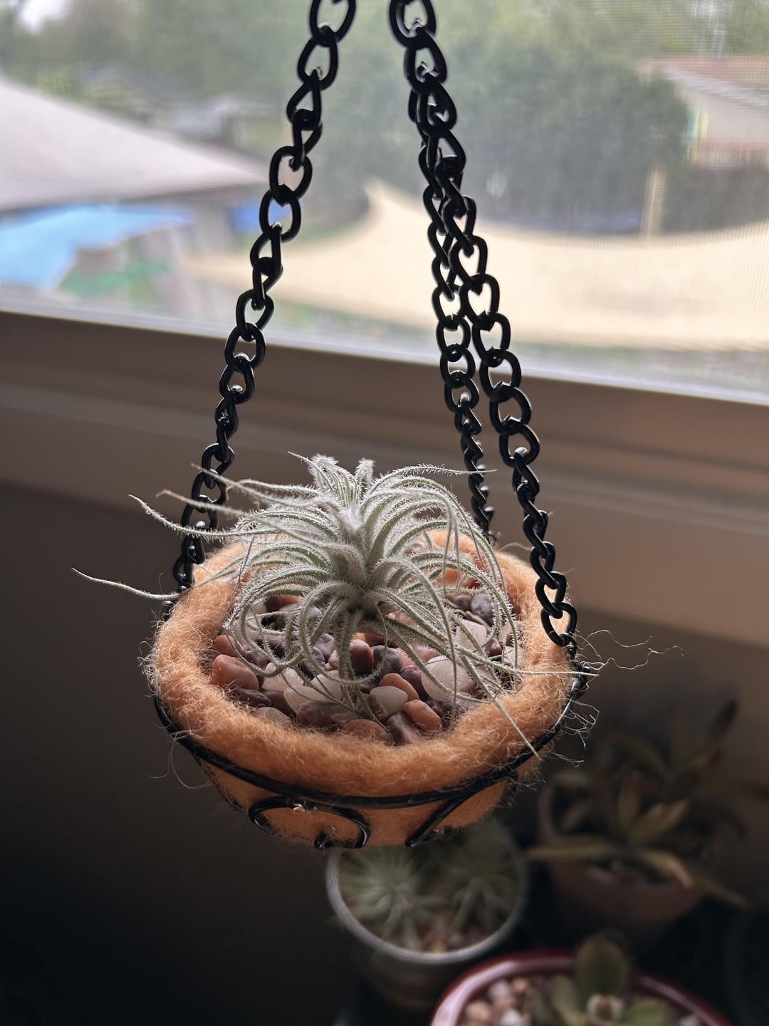 Made this mini coco liner hanging basket for one of my airplants :) this was a fun little project, the “coco” is needle felted and I bent the wire myself for the lil frame by cicadafate airplant Write A CommentYou must be logged in to post a comment.