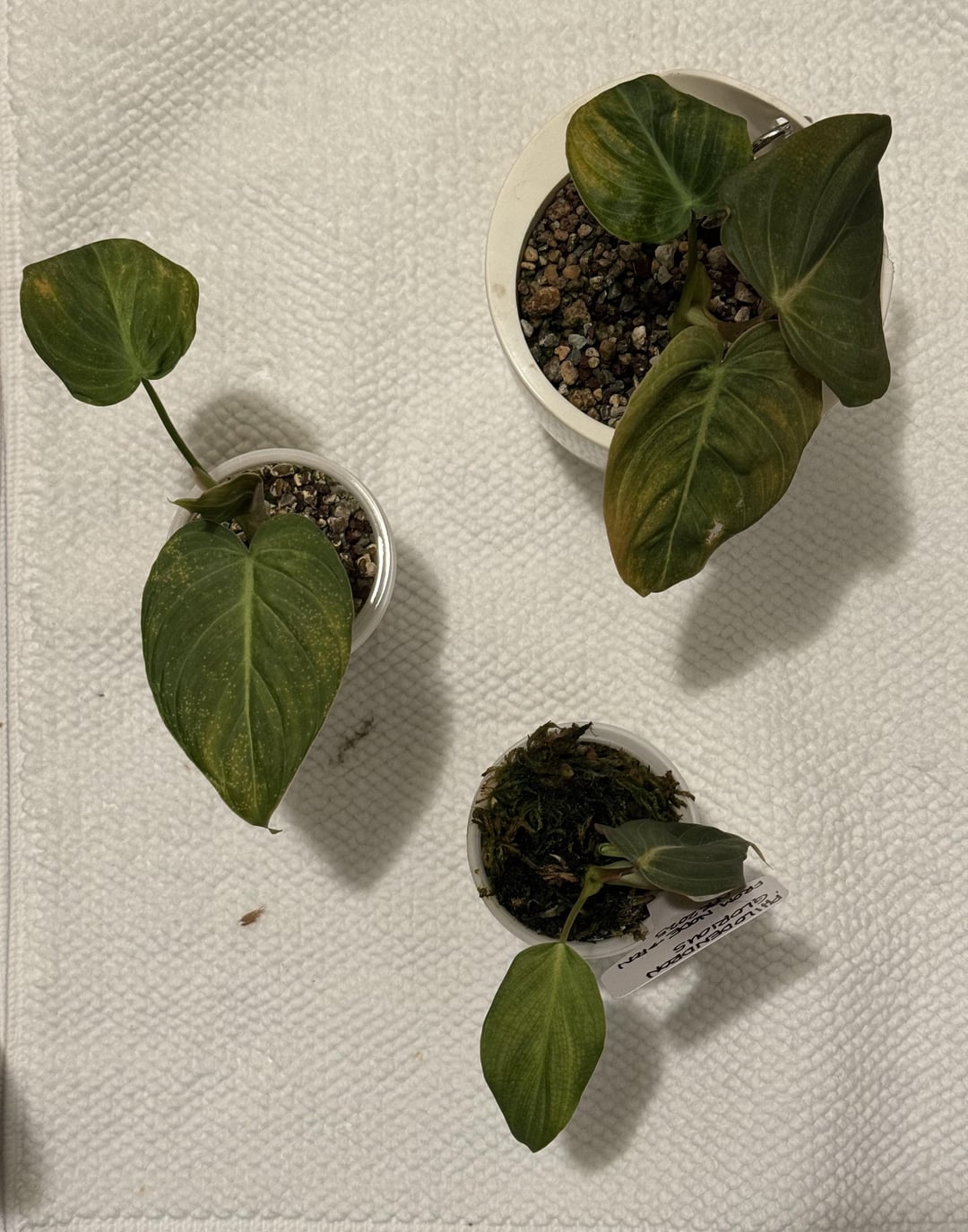 I have 3 Philodendron glorious propagated from wet sticks several months ago. The 2 smaller plants have been separate from the larger P. glorious yet all 3 plants have leaves that are taking on a yellow color. All 3 are potted in pon. I’ve been using semi-hydro fertilizer on all 3 each time I water. Is there fungal disease? Is this a nutrient deficiency? I haven’t noted any pests, but could I be missing something? I would appreciate any feedback.