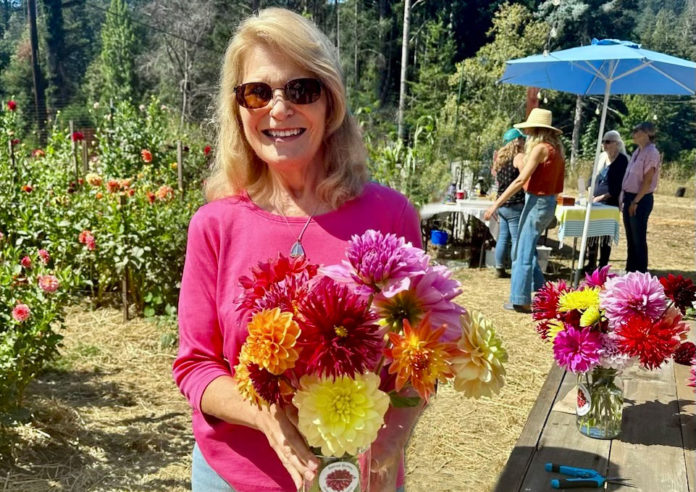 The author picking dahlias at Karla DeLong’s Beeline Blooms. (Contributed)