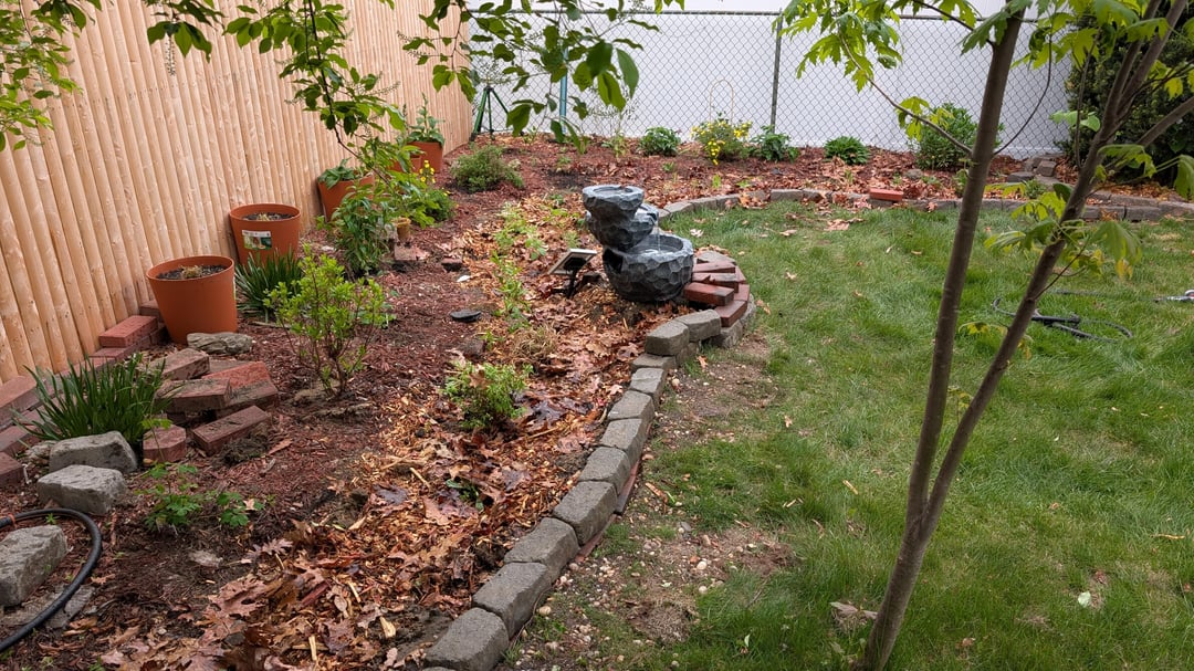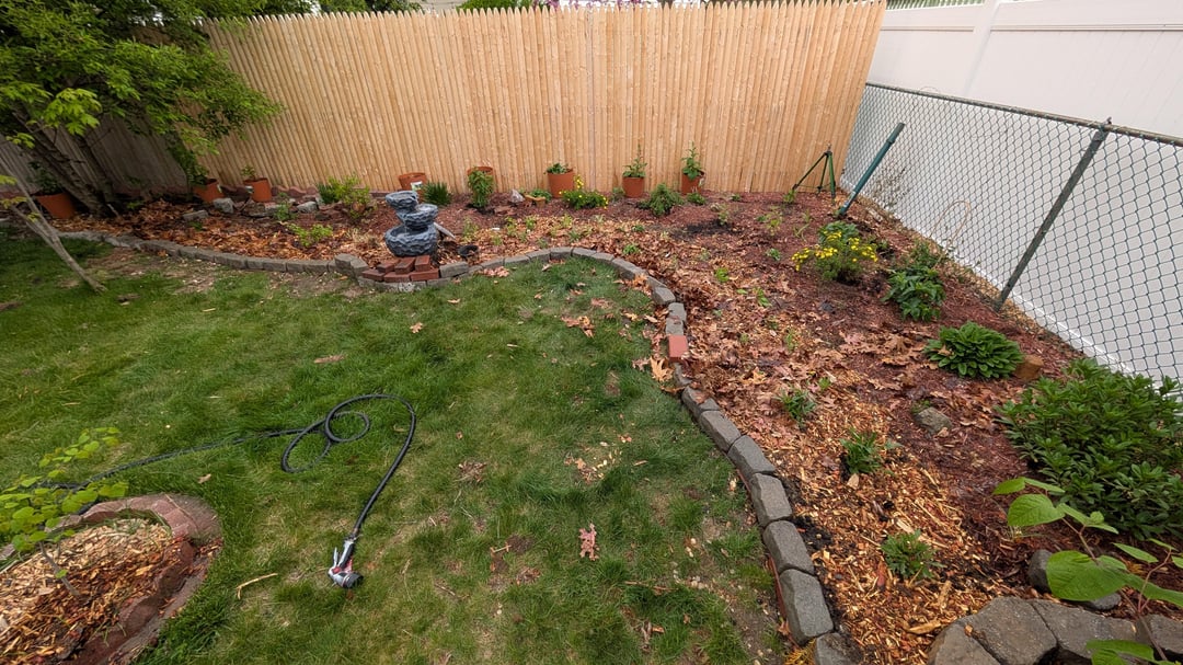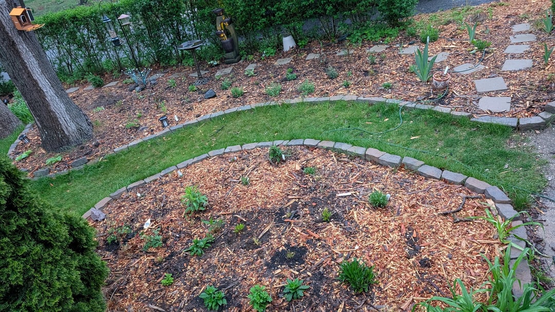 Slowly turning my lawns into garden beds. Used both strategies of ripping up sod (instant garden bed, labor intensive) or using sheet mulching (raises soil line, keeps organic matter from dead grass). Highly recommend waiting out for a load of cedar mulch from a local arborist for top dressing. Super excited for everything to grow. I try to buy mostly native plants from local nurseries and not one plant has died, they're tough and hard to kill!