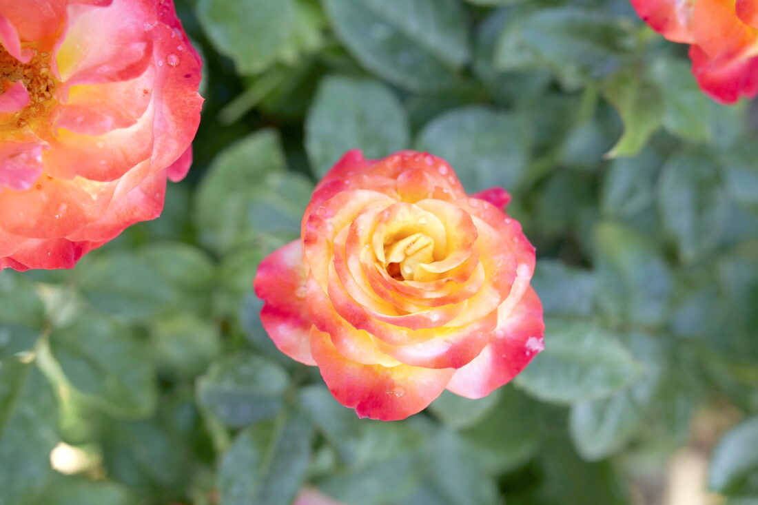 Large, eye-catching roses emerge yellow and red, then open to reveal a burst of electric orange. Glossy green leaves create a lovely backdrop on the disease-resistant, heat-tolerant plant that blooms from summer to frost. Expect it to grow to 3-4 feet tall and 3 feet wide in zones 4-9.