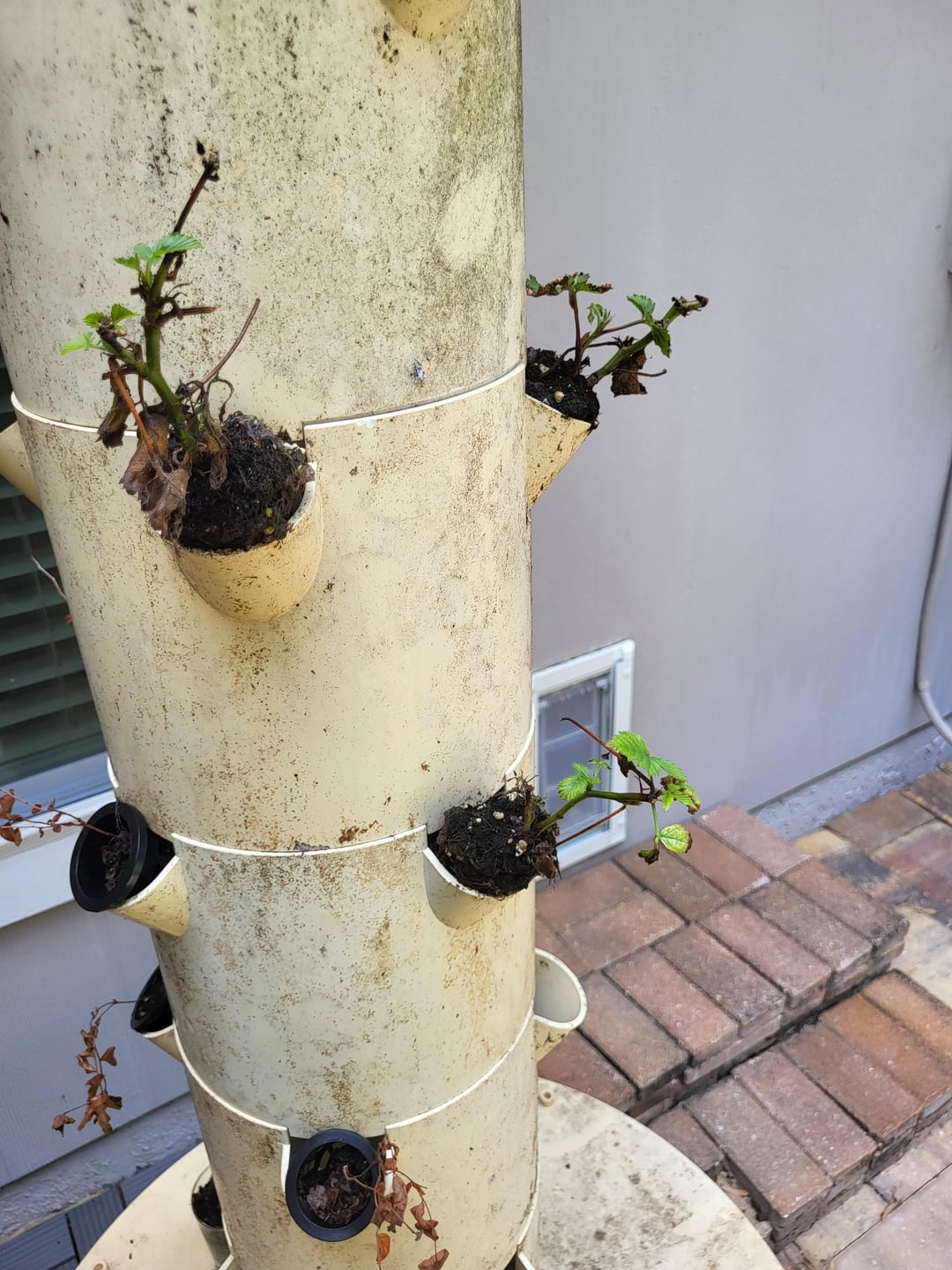My dad recently got this old hydroponics tower and decided to use it to grow some food plants. Strawberries, rasberries, and blueberries mainly. However it seems like most of them have died and some are looking worse for wear.