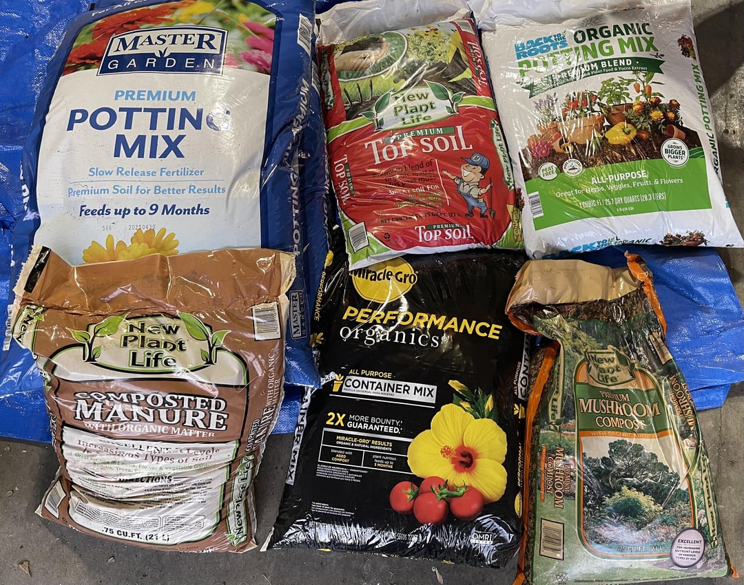 The top soil and possibly some of the others will only be soil with maybe compost/manure/fertilizer already mixed in. You will want to modify these to be more breathable for container plants. The most common is like two parts soil, one part perlite, one part vermiculite with adjustments depending on if the plant needs more sandy soil, etc.