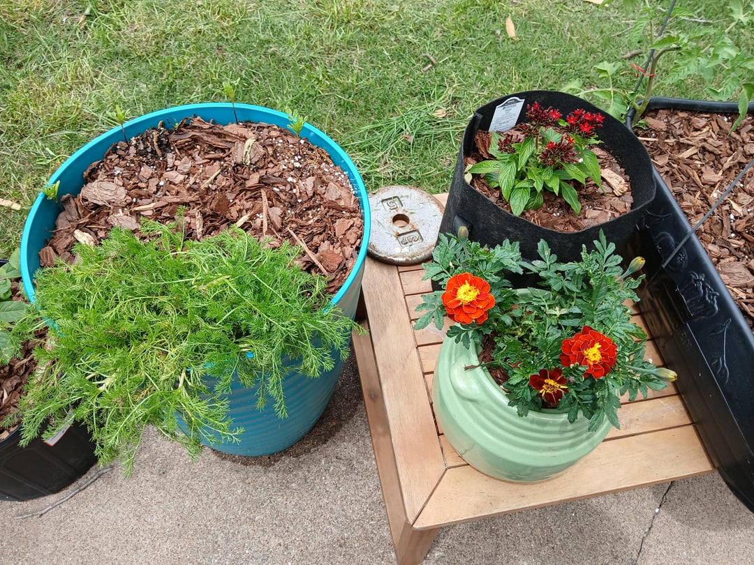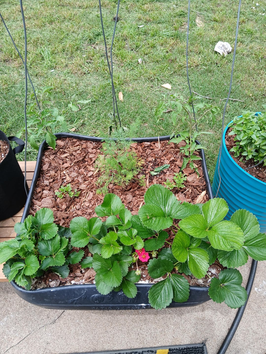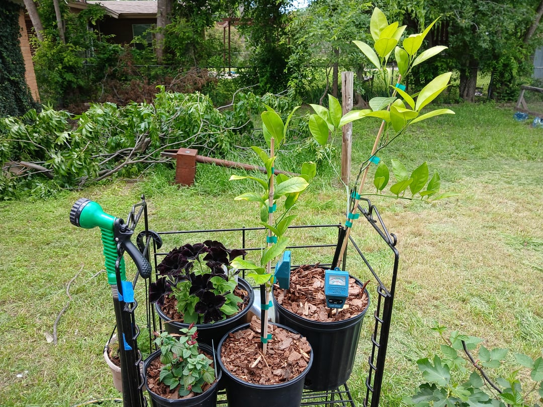 I'm pretty new to gardening and doing everything in containers. I have several fruit trees (meyer lemon, marks orange, and a couple of fig trees), blackberries,strawberries, tomatoes, eggplant, a lettuce container, and a bunch of flowers. Let me know what you think.
