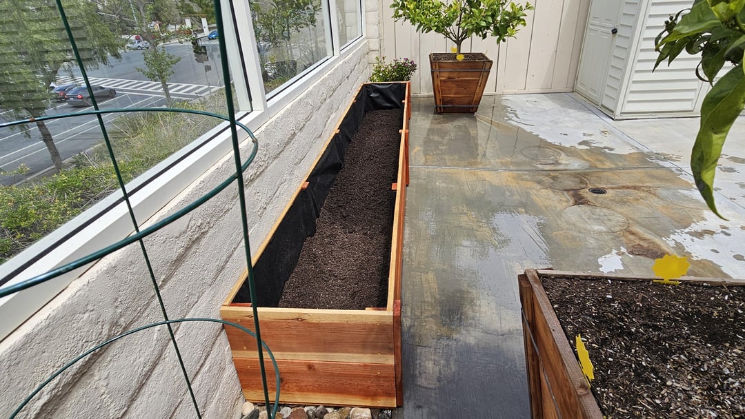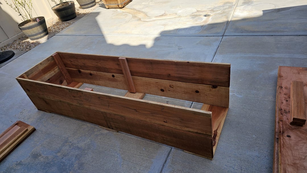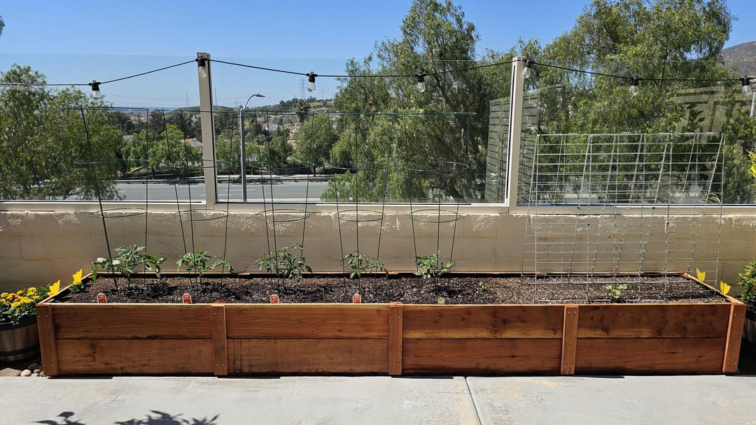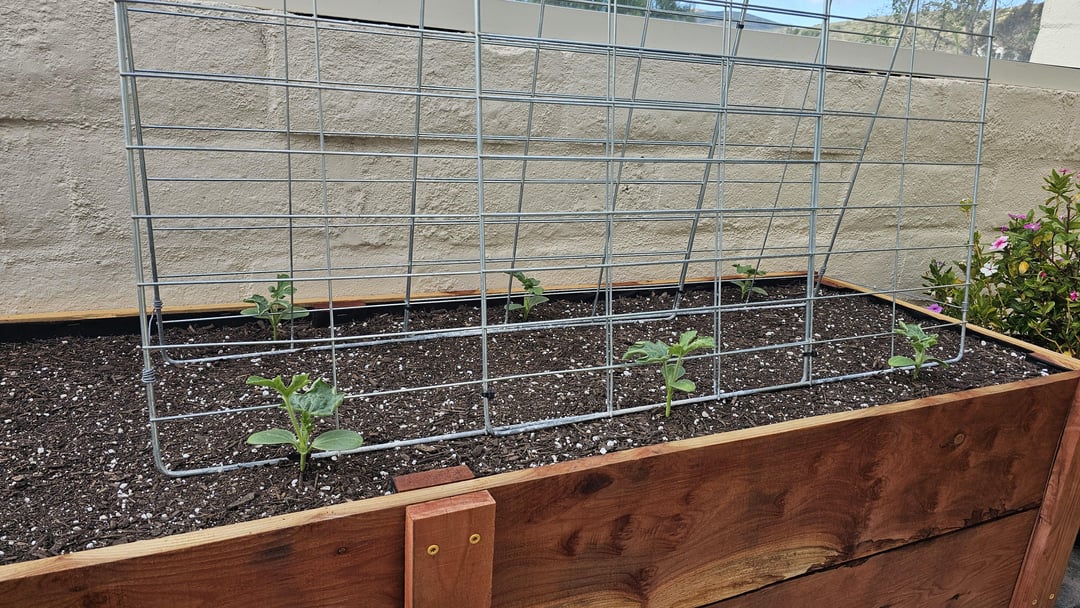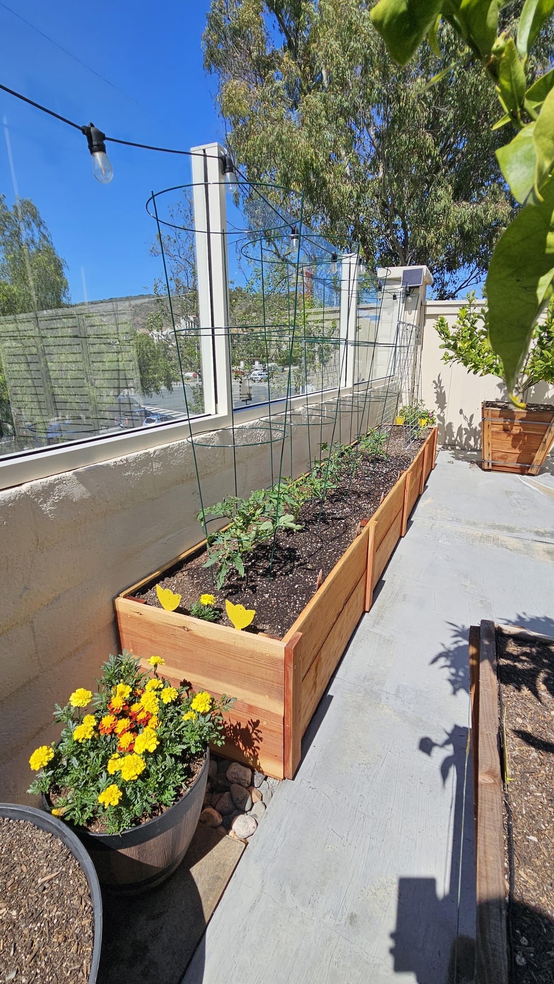 Built a 12 ft raised garden bed for my tomato plants out of untreated redwood pickets! Added some french marigolds and an A-frame trellis for the mini-love watermelons as well. π π