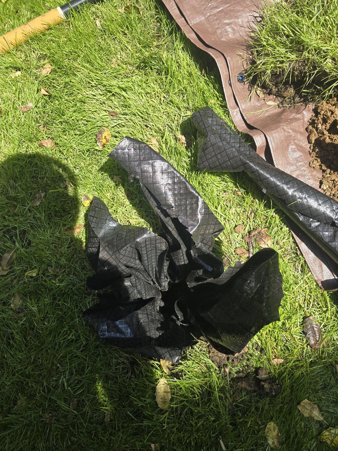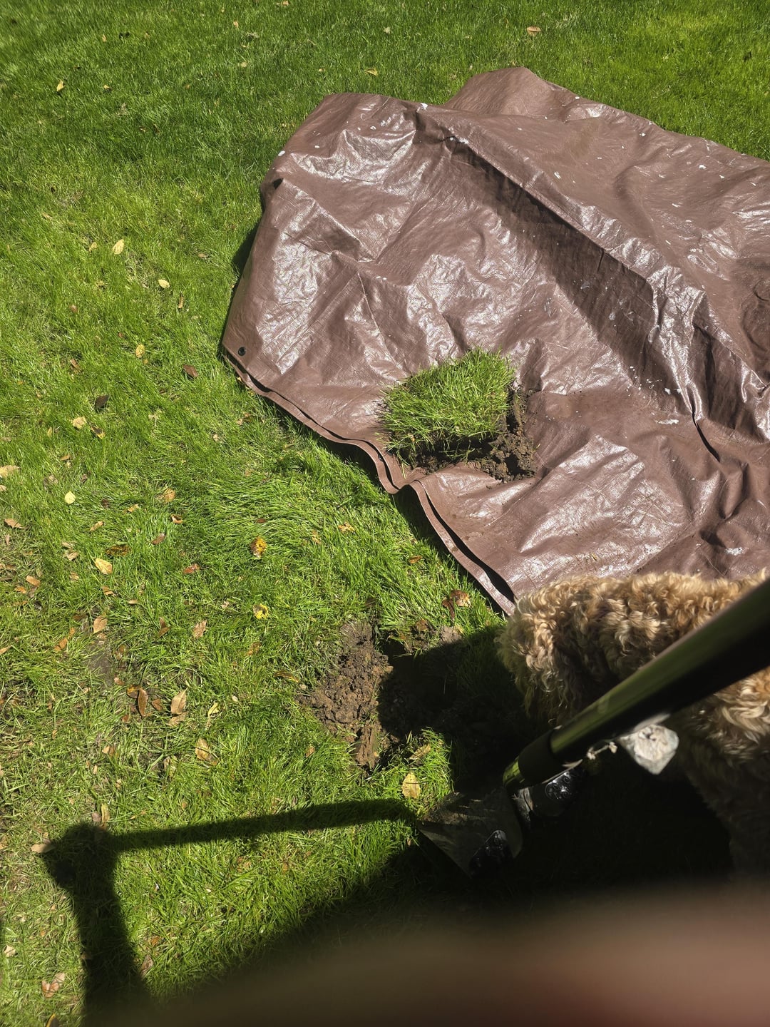 This small section of lawn has some serious drainage issues. It's always a 6ft by 6ft pool when it rains or even when I run the sprinklers. Some old man on YouTube said this method of digging below the hardpan and filling it with a bag of rocks and fabric works wonders. Let's see.