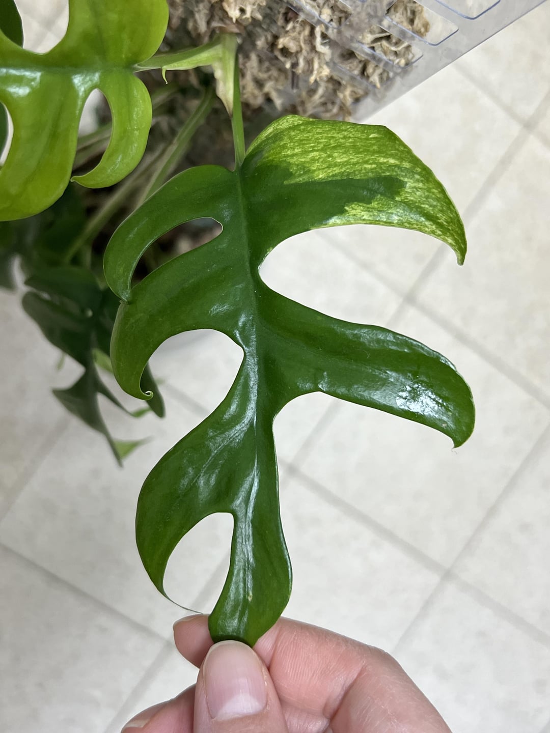 I bought this plant when it was really small (in the picture it’s after a few weeks in my house), now after a few months and giving it a moss pole I see green variegation on the new leaves. (The other leaves have it but it’s not very visible and you have to put the plant in front of bright light to see). Is it sport variegation? Mint? Or maybe it’s just sick?