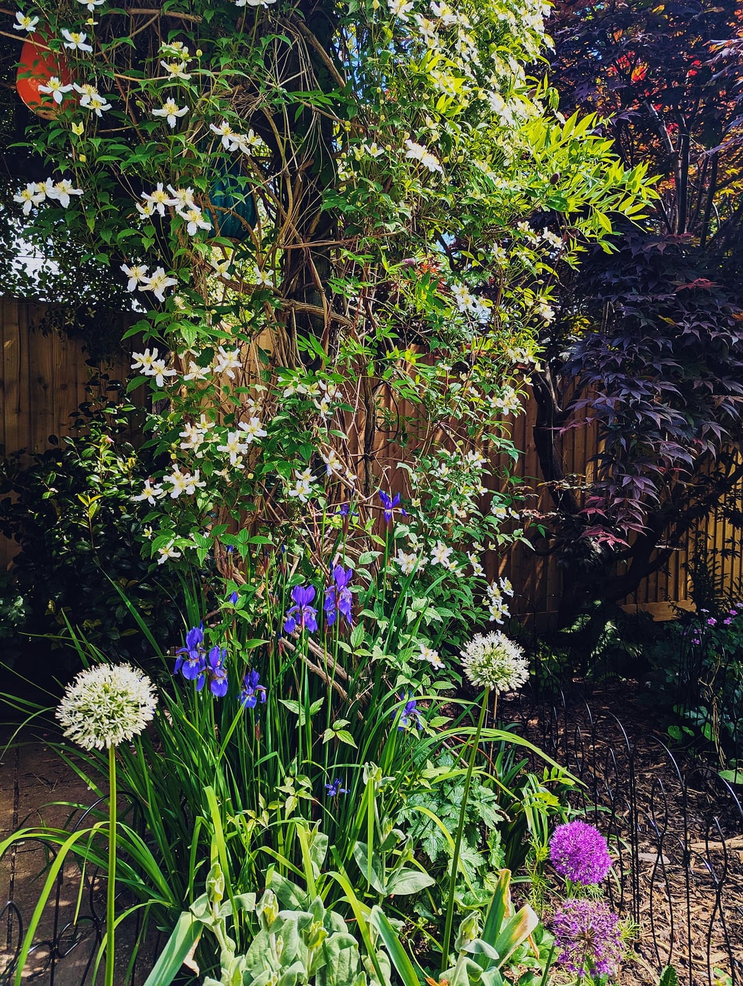 Late flowering wisteria will follow the clematis (🤞) and lychnis, cosmos, ornamental poppies, hardy geranium and a rose are set to follow on from the iris. This patch of ground it tiny. Probably 3×2 ft. I'll have to move the rose eventually I'm sure but will get a good couple years in first.