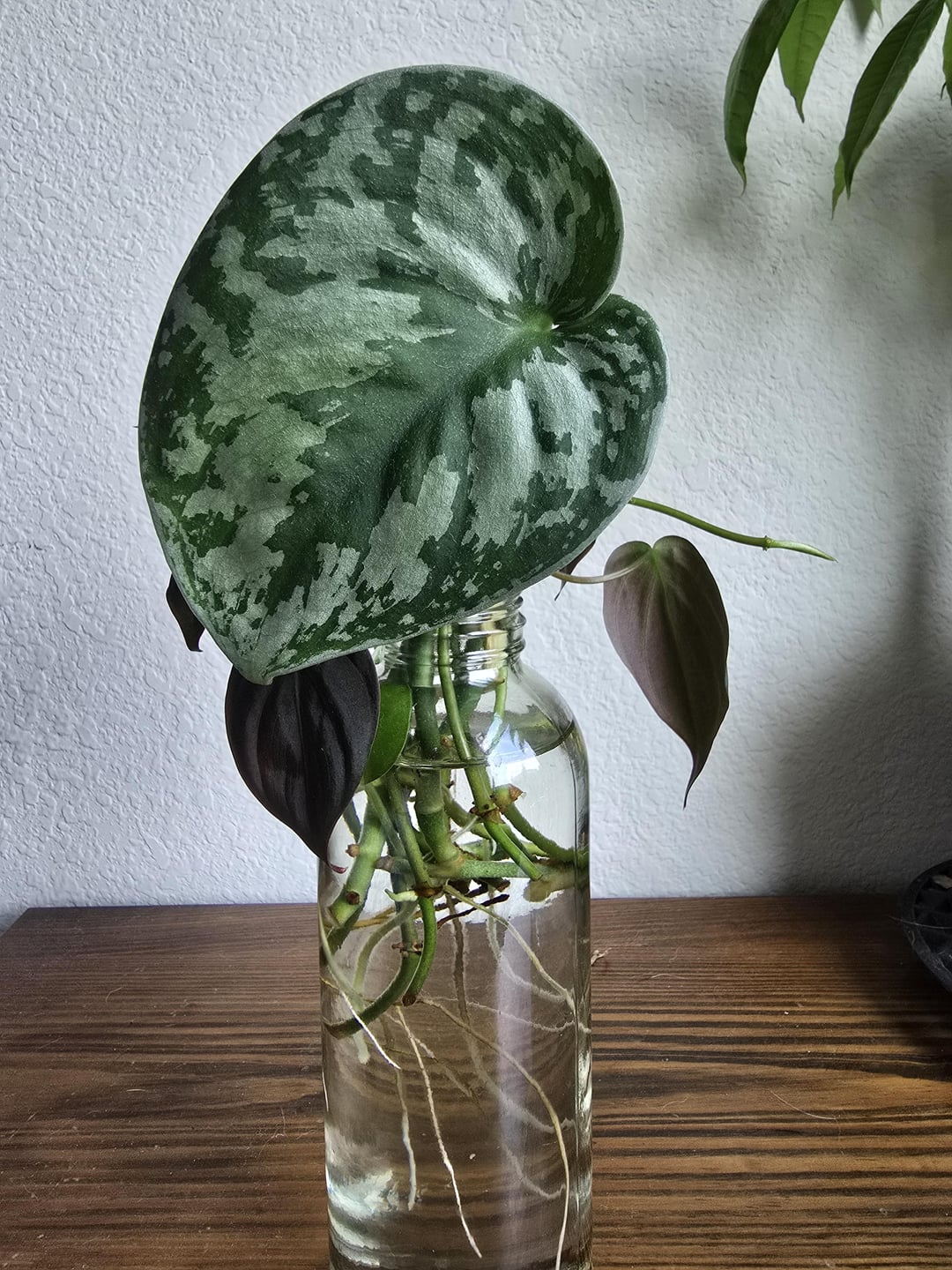 4. Raph, tetrasoerma on left, and hard to tell just by leaf. Could be Verigated heart leaf, monstera albo, maybe a pothos (not marble queen tho)