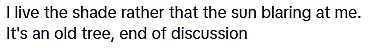 ‘I love the shade rather that the sun blaring at me. It’s an old tree, end of discussion,’ said another.