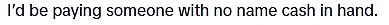 Another with a similar perspective joked, ‘I’d be paying someone with no name cash in hand’.