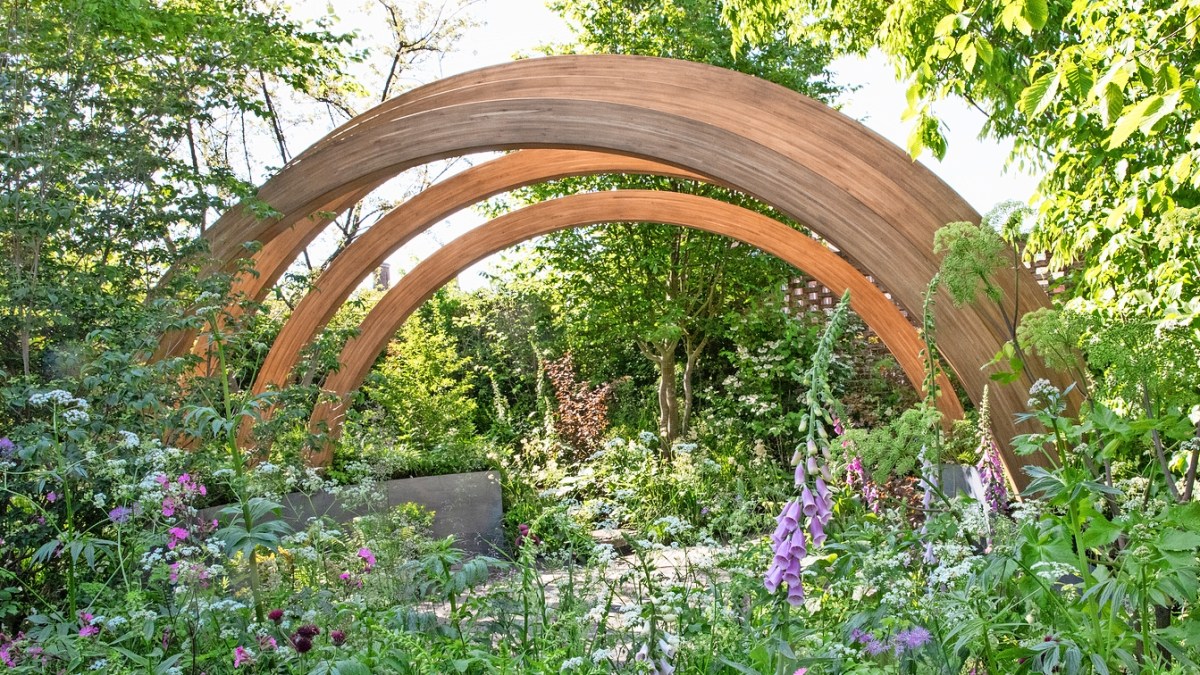 The Glasshouse is a fabulous charity supporting women in UK prisons, who receive horticultural training, employment and resettlement support. The charity won a gold medal last year in the house plants studio category. This year Jo Thompson has designed a large garden, which is a big step up. It’s an immersive space centred on a translucent elliptical pavilion — the glasshouse, I guess, but this one is rather fancy, with coloured tints to reflect the planting palette. A narrow rill (stream) winds its way through the space, connecting different areas and ending in a reflective pool. Thompson loves her roses so it’s not surprising that there will be plenty, inspired by the notion of “strong beauty” in a palette of deep reds and muted pinks. The garden will be relocated to a women’s prison in the south of England after the show.