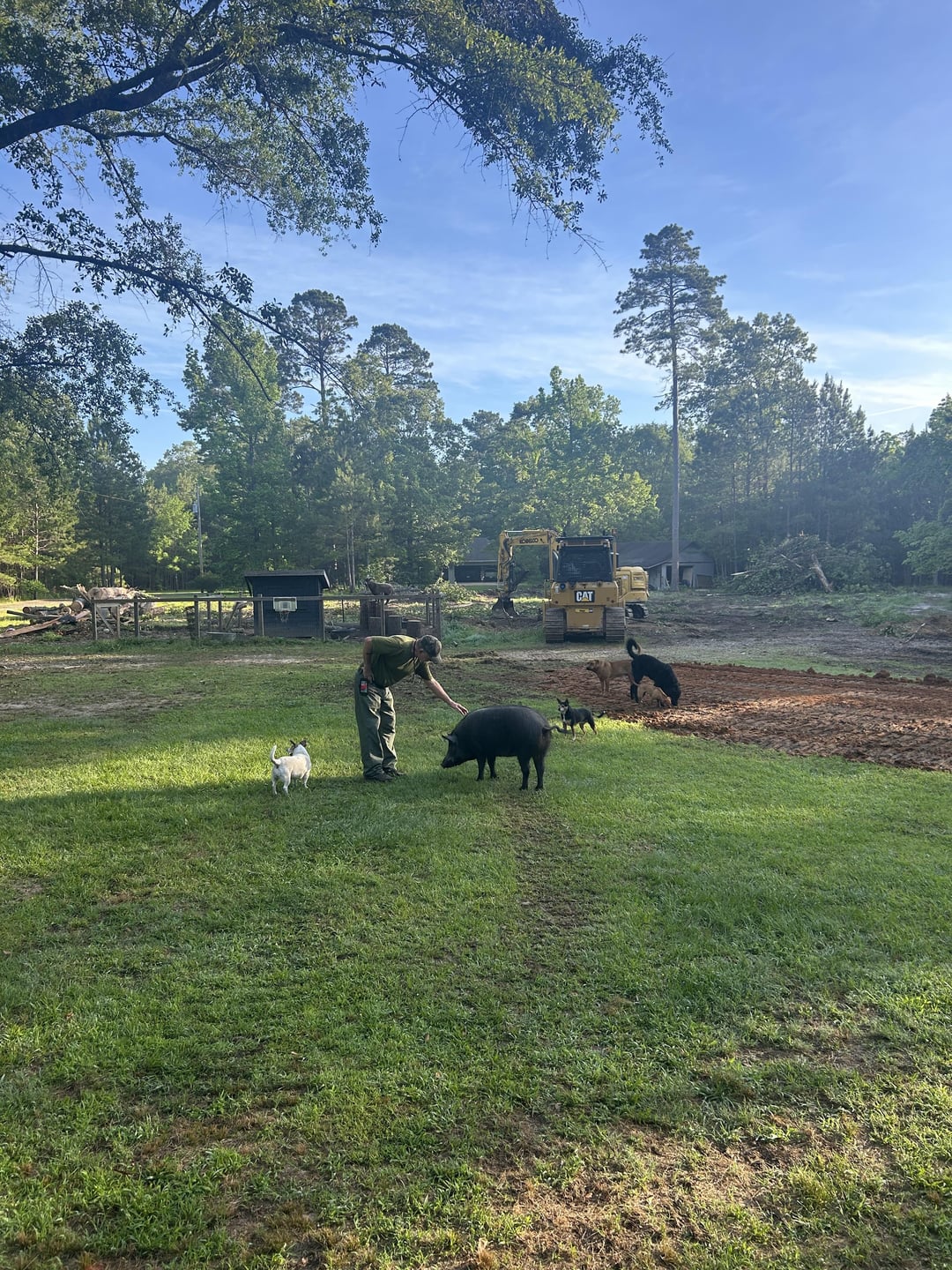 Hello and good morning! Wondering if you folks can help out our family. Long story short, my daughter has a pet domesticated wild hog that has been her pet for over a year, her name is Queenie. The pig is a sow. She’s huge. She likes belly pets and blackberries. She loves being sprayed with the water hose in the summer. She lives in a pen with her best friend, GoatMan. We had dozer work being done on our land and the operator accidentally dropped a tree on their pen. Queenie and GoatMan escaped like a couple of Louisiana fugitives. GoatMan was easily caught and penned back up. However, Queenie remains quite elusive. She is staying in our yard or on the back porch chilling with the dogs. She is literally living her best life. She lets us pet her, nose boops our thighs and follows us around. But, by god, we cannot contain her. She is so damn fast to be so chunky. How the heck do we catch her? (For the record, we have no desire to slaughter her or lethally contain her). We live on about 60 acres, have a side by side, an older tractor, my van, my husband’s truck and a little skidster. We also have THC gummies. We’ve considered giving her a gummy and then dragging or scooping her into the pen. Photos attached for reference. Apologies if this is the wrong sub, it’s just been a really friendly/helpful sub to follow.