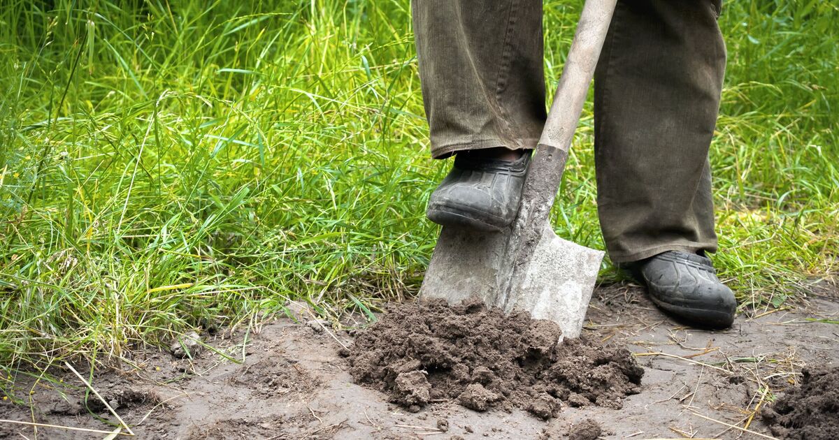 The clip see’s the expert in his garden using a shovel to move dirt which makes it seem like he is covering something rather suspicious. He then stops to lean on the shovel to explain the far from normal gardening advice.