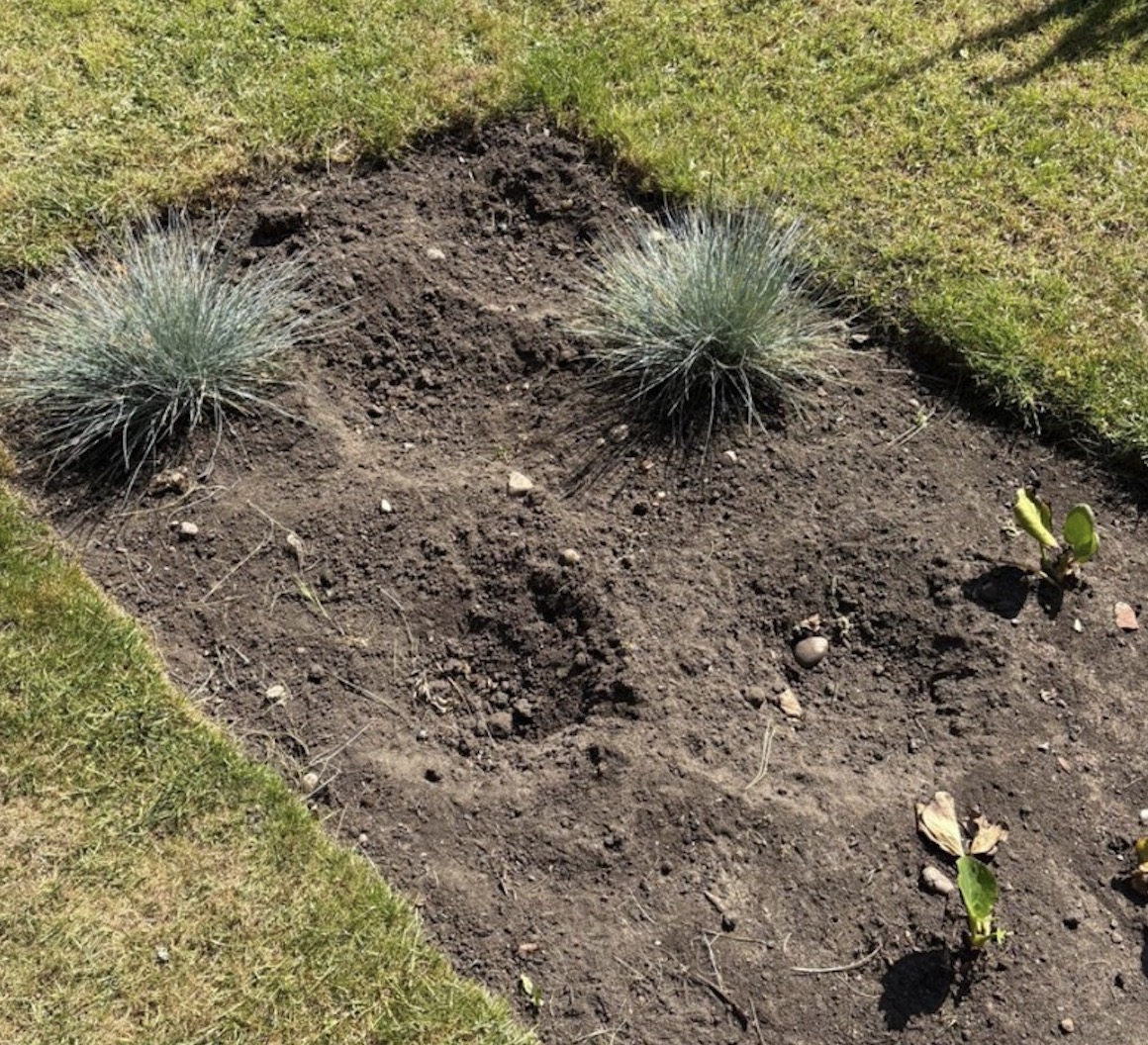 ‘Photos show the flower beds this morning vs the planting by volunteers last week.’