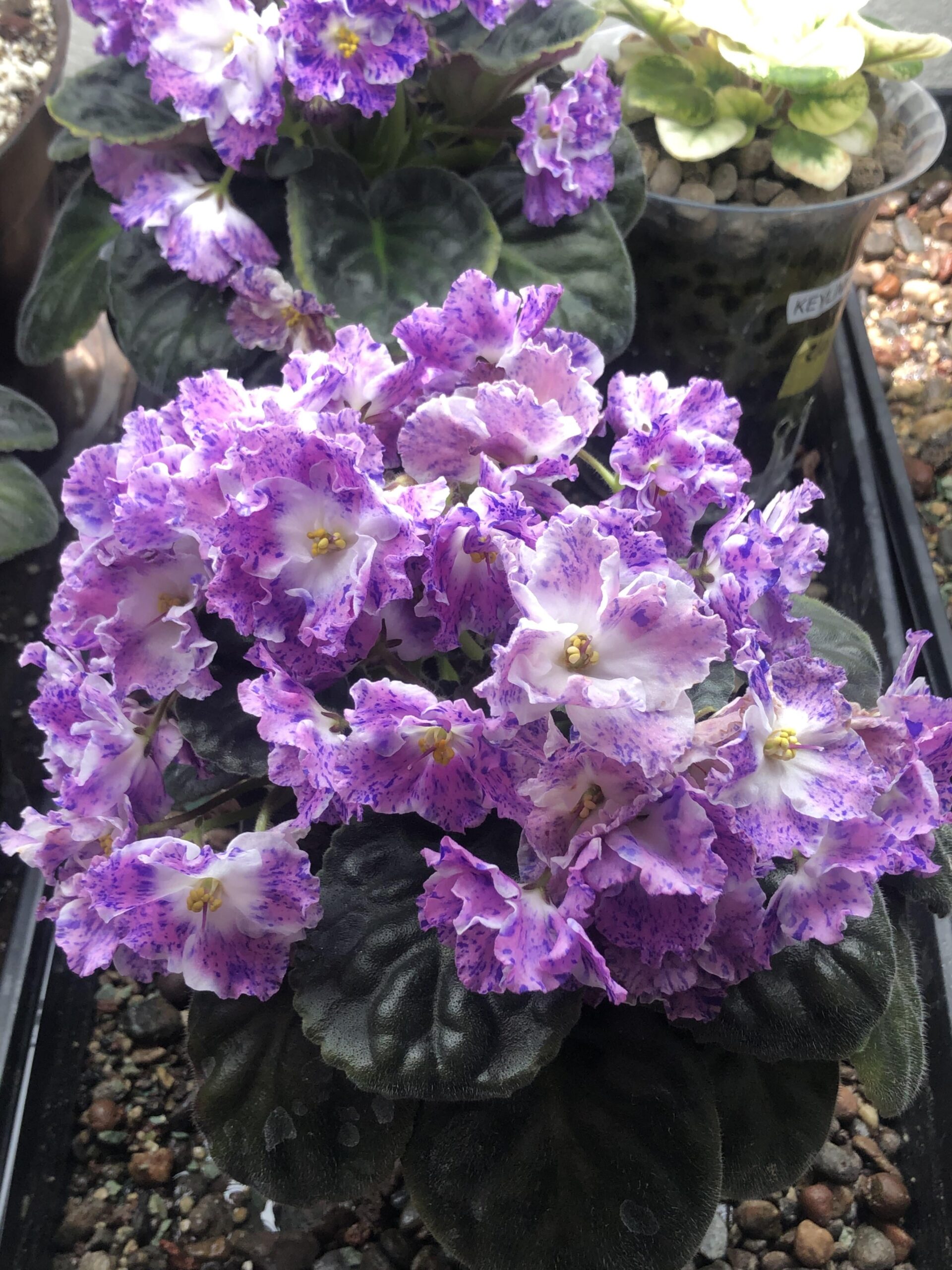 Playful Spectrum is a standard. Fastest growing and first to bloom of my 40 African Violets. Always in bloom in abundance. Big Flowers. I have 3 extra that are full size and blooming. Open to selling or trade.