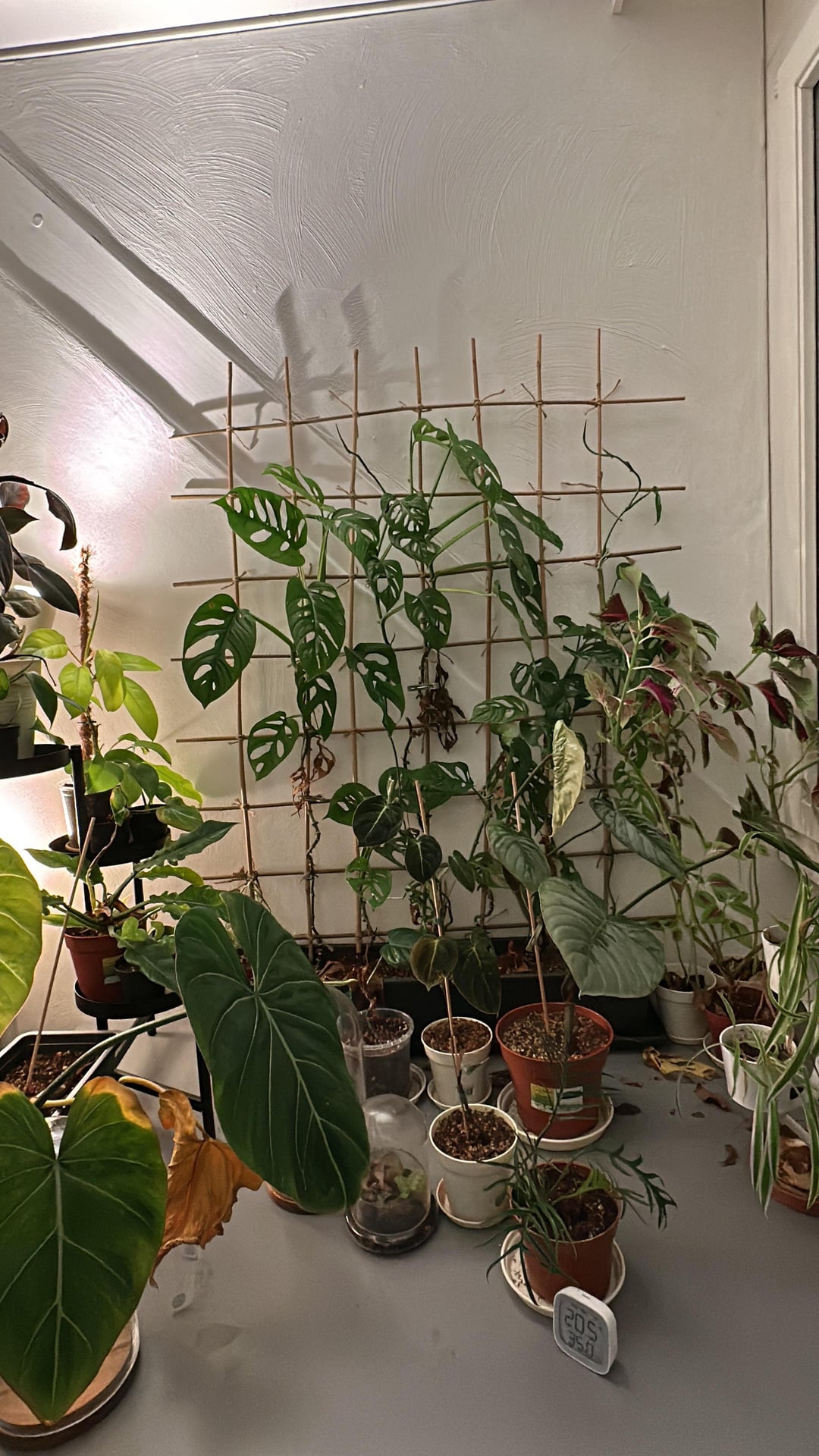 If you get them onto Moss poles made from wire mesh and Moss and keep that moss moist which you can achieve effectively by wrapping the mesh around a large round drinks container make it about six foot tall it will create a humid environment around your plants so you’re less likely to get the annoying spider mites that you would get in the dry environment.