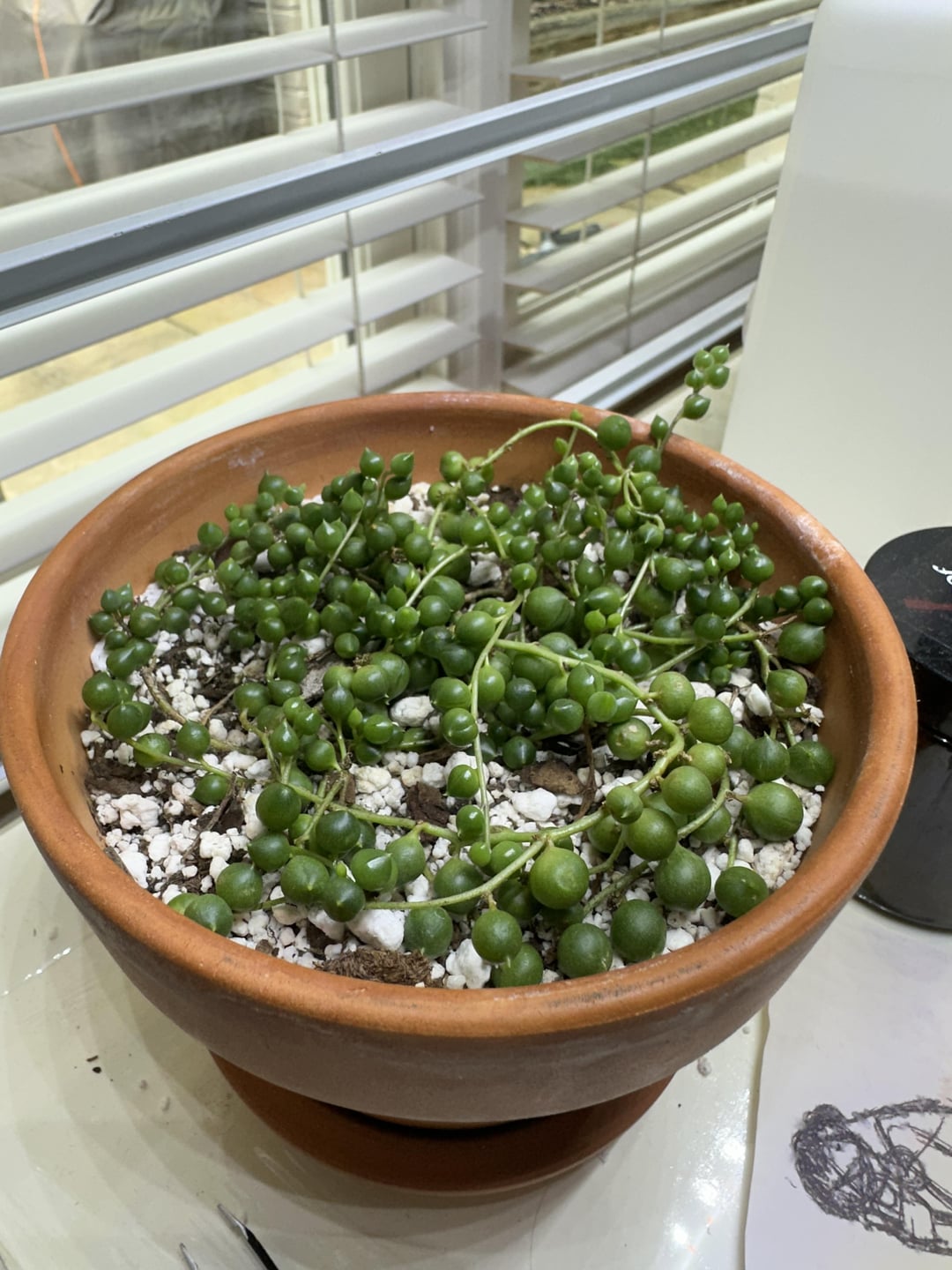 Woow tell me your secret??? I have a string of now withered pearls I’ve been trying to propogate in a terracotta pot and they have not been doing anything. Ive had much better success propagating in regular plastic pots than terracotta. Did you use to have to water this more frequently so the pot didnt just suck up all the water from them?