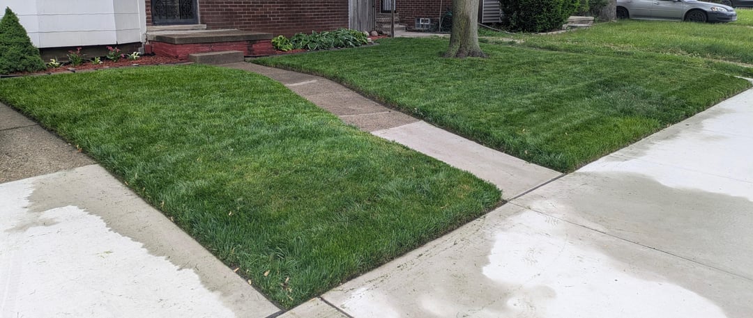 Last Spring/Summer the city of Detroit installed new water lines..The entire block was underr construction..My lawn was 70 percent destroyed..Once completed they put down Contractors Grass ..I followed up by putting down JG Black Beauty Ultra September 2024 and again some more JG BBU and JG Blue Panther KGB April 2025..Fertilized with Milorganite and starter fertilizer and so far so good 👍