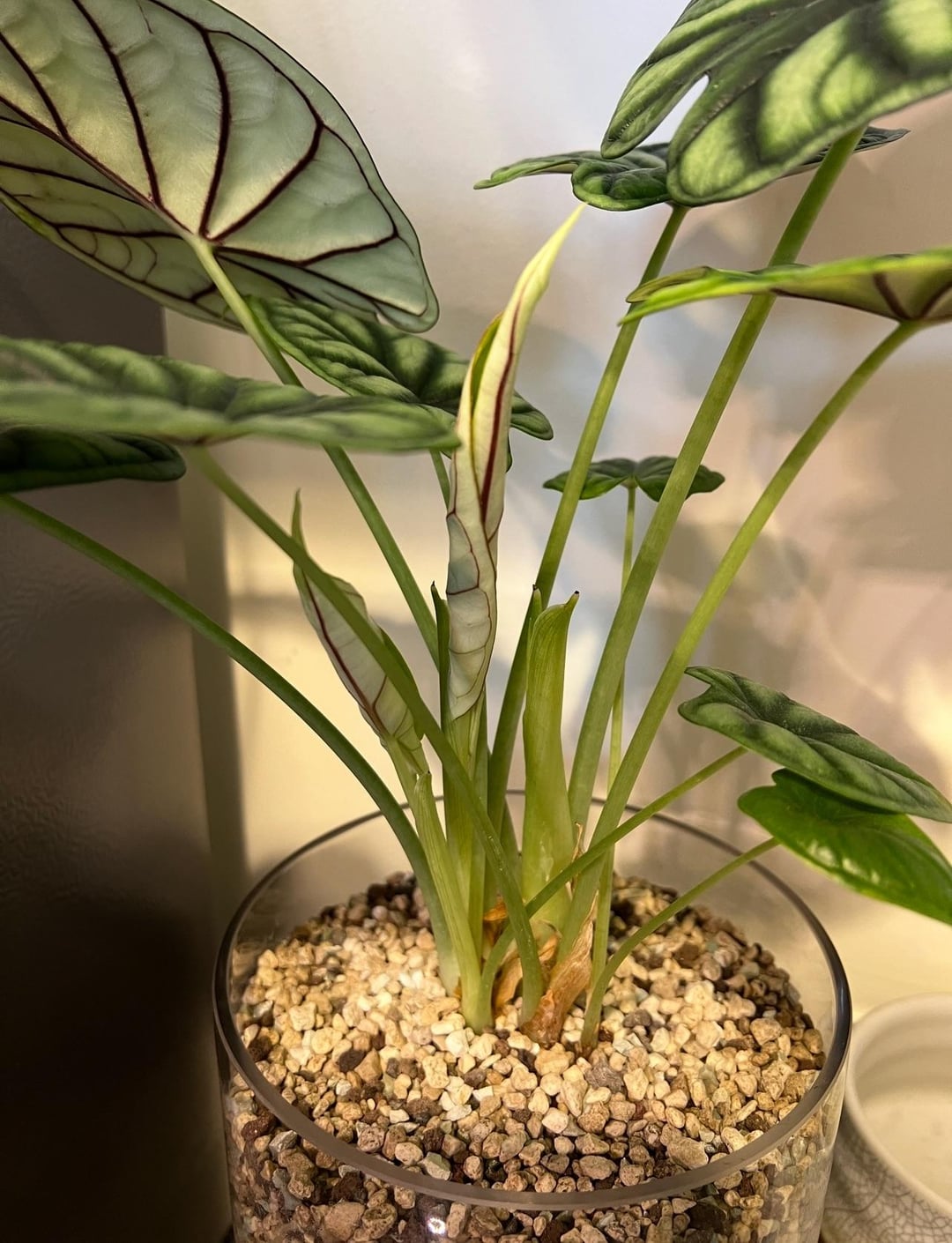 My pride and joy, my gateway Alocasia (she got me addicted). I call her Kalisi because she’s given me so many babies (corms) All of my dragon scales come from her. So she is the mother of dragons. She now giving 2 leaves at once. I absolutely adore her 😍