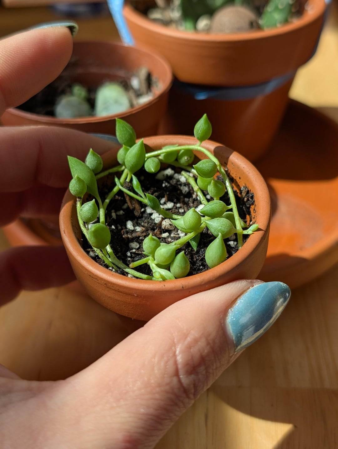 Rescued this little string of turtles strand from getting stomped to death. Hoping it will survive. And a baby string of pearls propagation for the bonus by lilgoliath String of Plants Write A CommentYou must be logged in to post a comment.