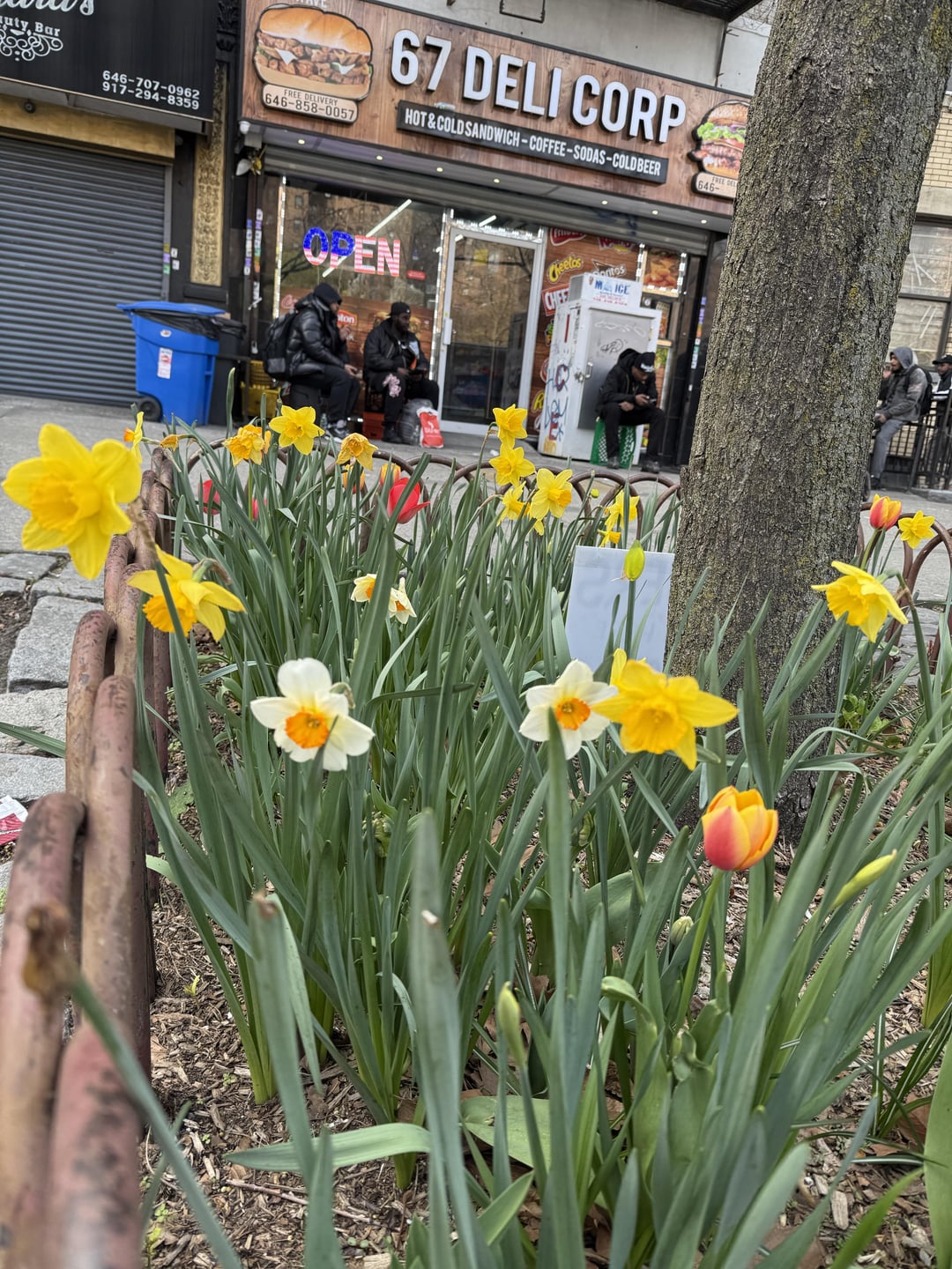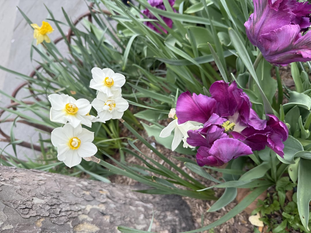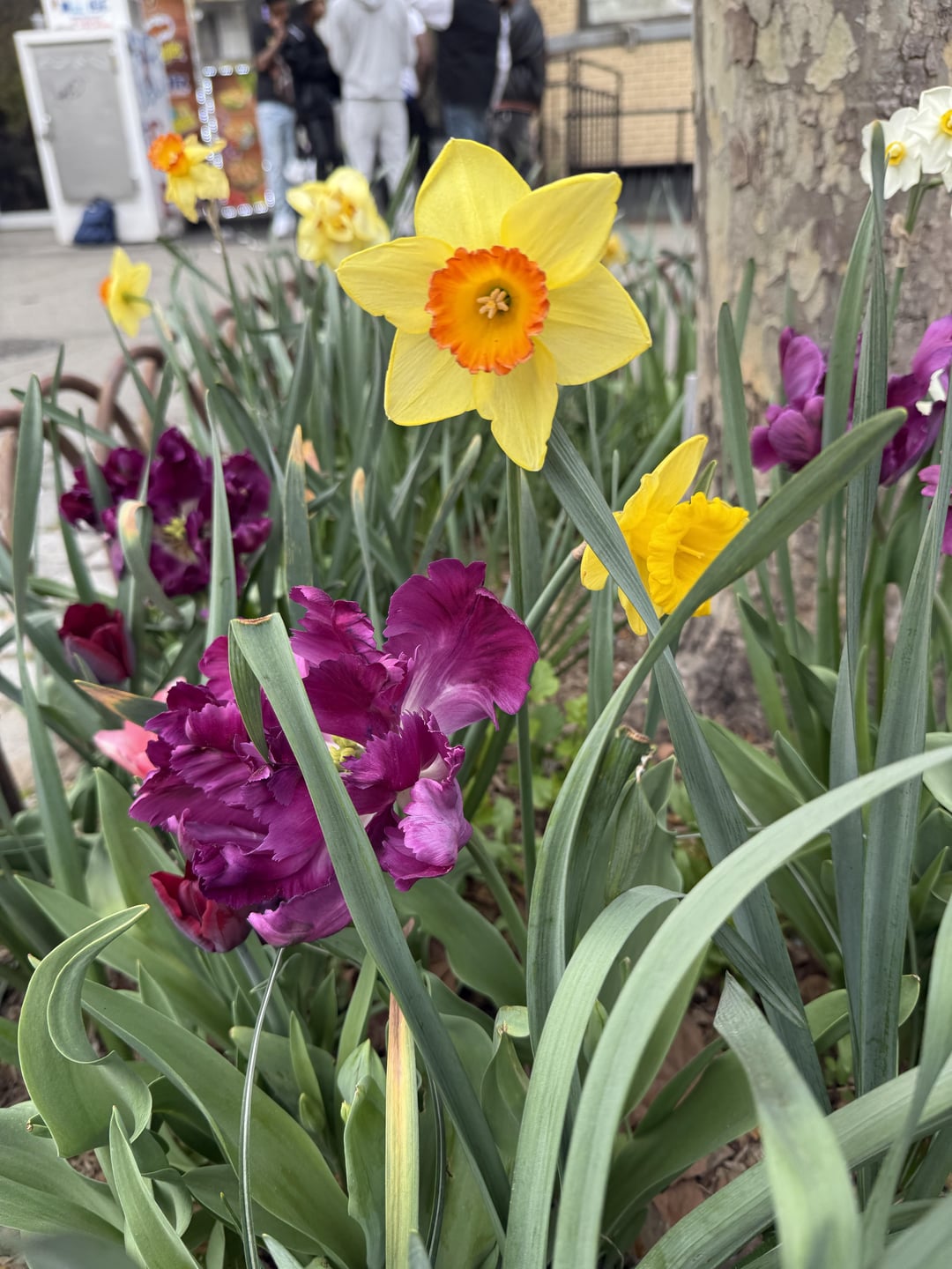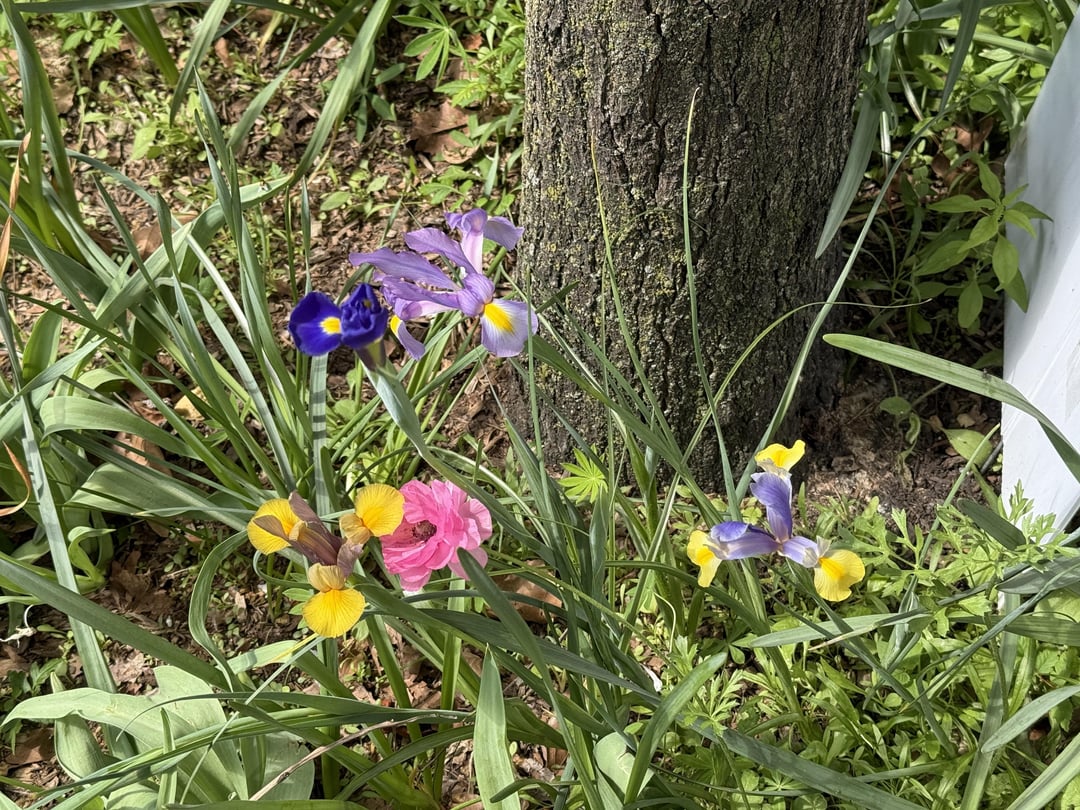 This year I filled in some bare spots and added more varieties of tulips. Did my annual mulching in the fall and fertilizing in the spring. I added a dozen ranunculus and irises to see what would happen. The early spring daffodils and tulips were a whole show! The iris and ranunculus came in sparsely but right when the tulips died off, I have hope I can keep adding to them to fill the garden out into late spring. I spread a quarter pound of wildflower seeds across both beds as well, though that is more interesting to the birds so not sure how much will come to flower. From March through May the 2 tree bed gardens have been a source of joy for the whole block.