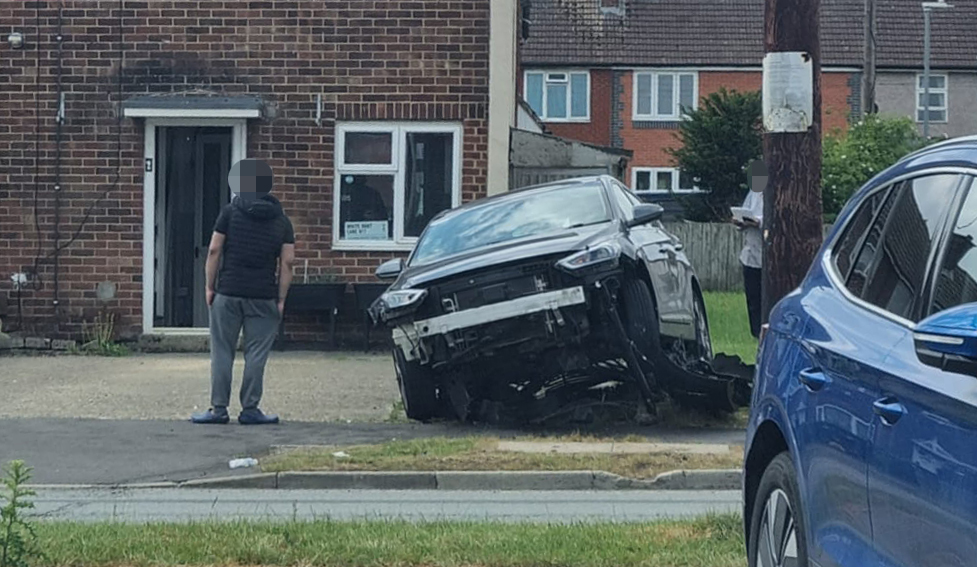 Wiltshire Police say a Hyundai IONIQ and a Ford Focus was involved, with the Hyundai mounting a metal fence around the front garden of a property.