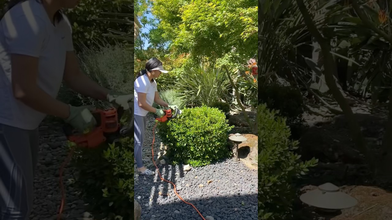 Hello everyone. Come with me to give my backyard a little TLC because tomorrow we are finally receiving our last piece of furniture. It’s the table and we’ve been waiting for it for about 2 months. I can’t believe we’ve waiting that long. But tomorrow it’s supposed to arrive. So I am here getting the backyard ready. And it is my first time actually using this electrical trimmer and it’s been a game changer. Like I used to use those big scissors and my arms were super sore afterwards. With this, it’s just super quick and I can finally reach up high. So that looks much better now. And with the days getting warmer, we’re planning on spending a lot of time out here watching movies, barbecuing, listening to music, playing with the water guns with the kiddos, all the fun summer activities. So stay tuned for tomorrow.