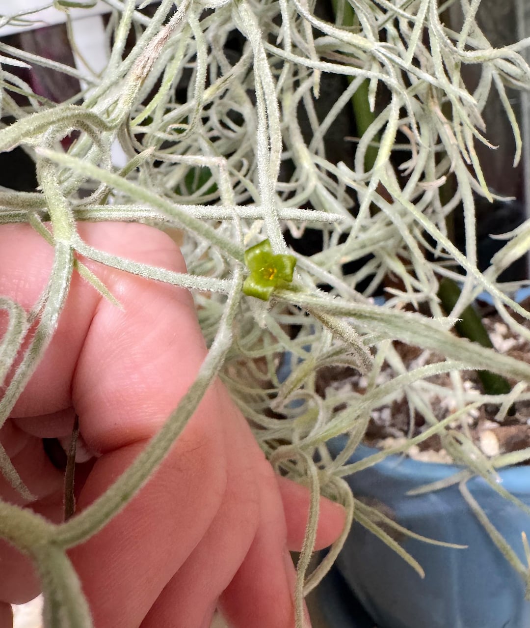 Yes it blooms, it is an air plant it’s not moss. It is good sign, your plant is happy. After one of the stems blooms, that stem will stop growing but it will offset and branch. Tillandsia are monocarpic so that stem won’t flower again. But the offsets will create a bigger bushier clup.