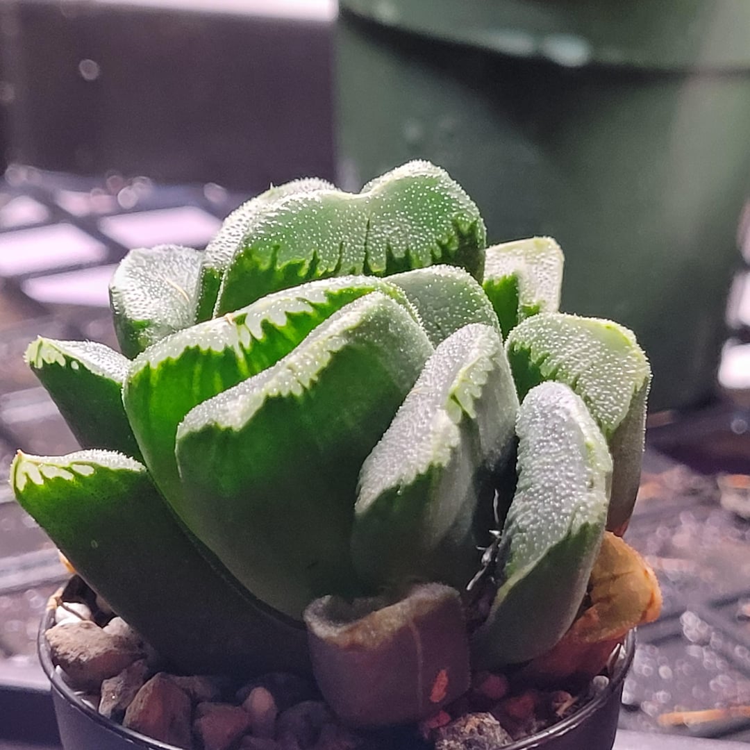 About how much longer should I go before repotting this guy? Maybe measured by new leaves since he grows relatively slow… He's in a teeny lil pot and seems to be stretching the plastic just a bit, but I think that's largely from him pushing the rocks. Don't wanna fuck with him too much since he's been so gorgeous, but also don't wanna restrict him unnecessarily? Any advice would be greatly appreciated cause this is my only haworthia with this horse tooth growth form, and I wanna do him justice!