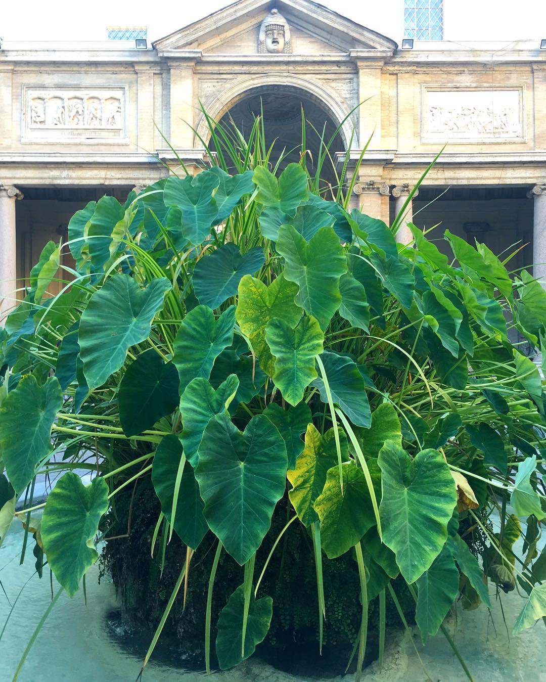 Taro has taken over the fountain centerpiece of the Cortile Ottagono, an octagonal courtyard where Popes have collected sculptures over centuries 🌿🌿 Toured the Vatican today…👉See our story for more📽 #taro #vatican #thehorticult