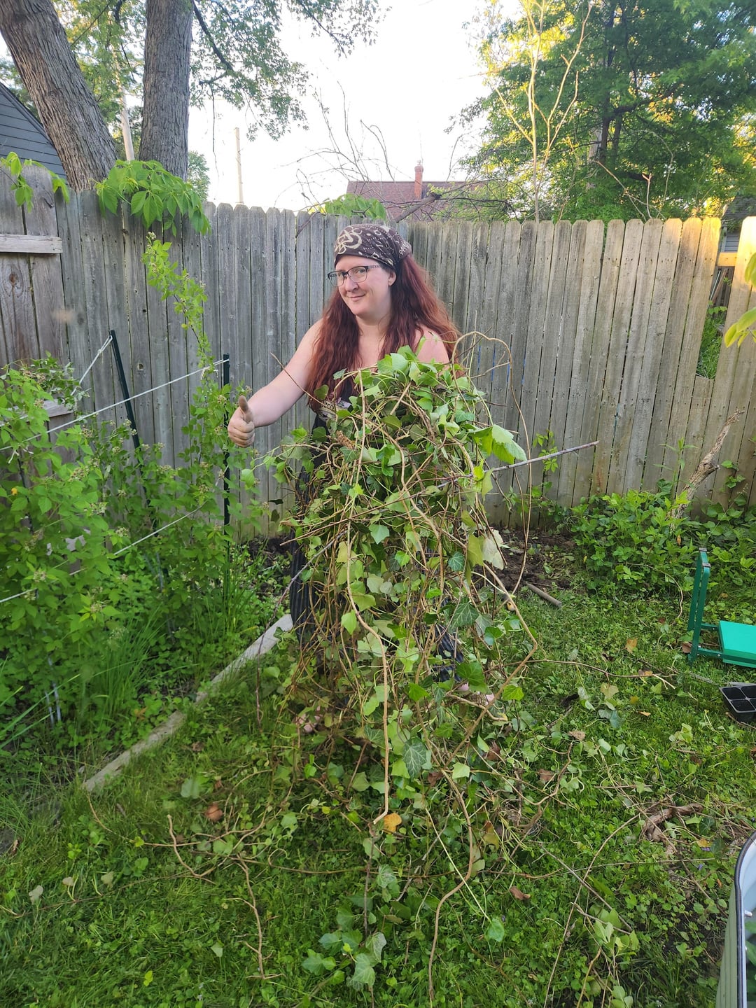 I misread the title as “posing with POISON ivy,” and I was horrified when looking at the picture. Good luck getting it all out.
