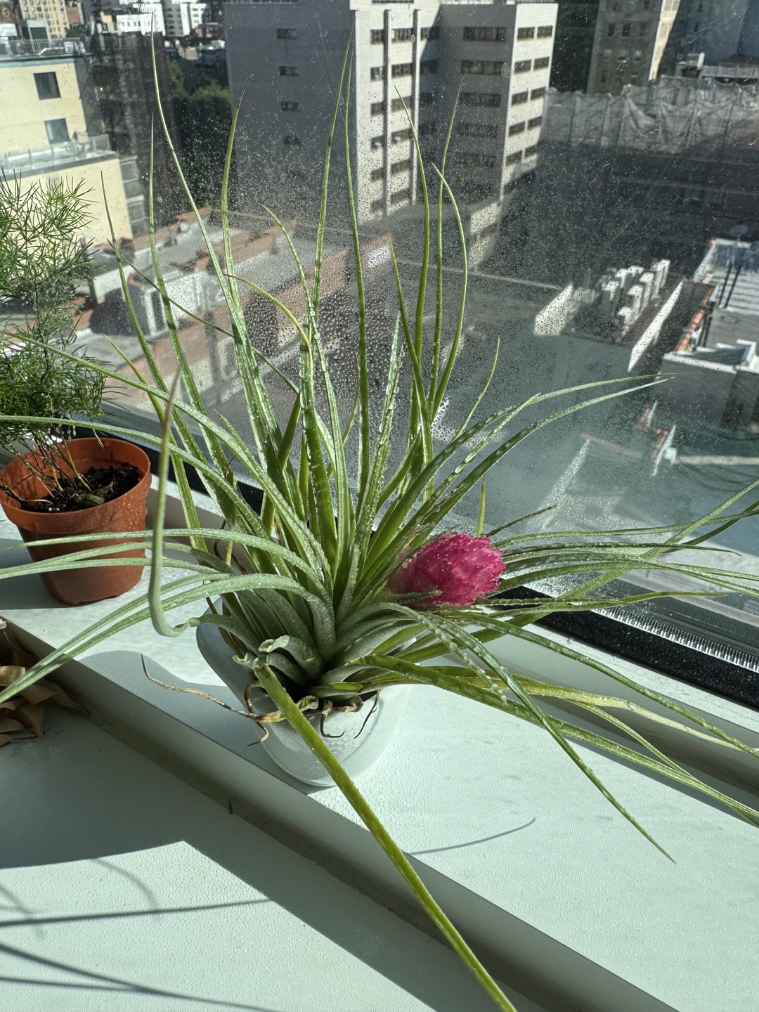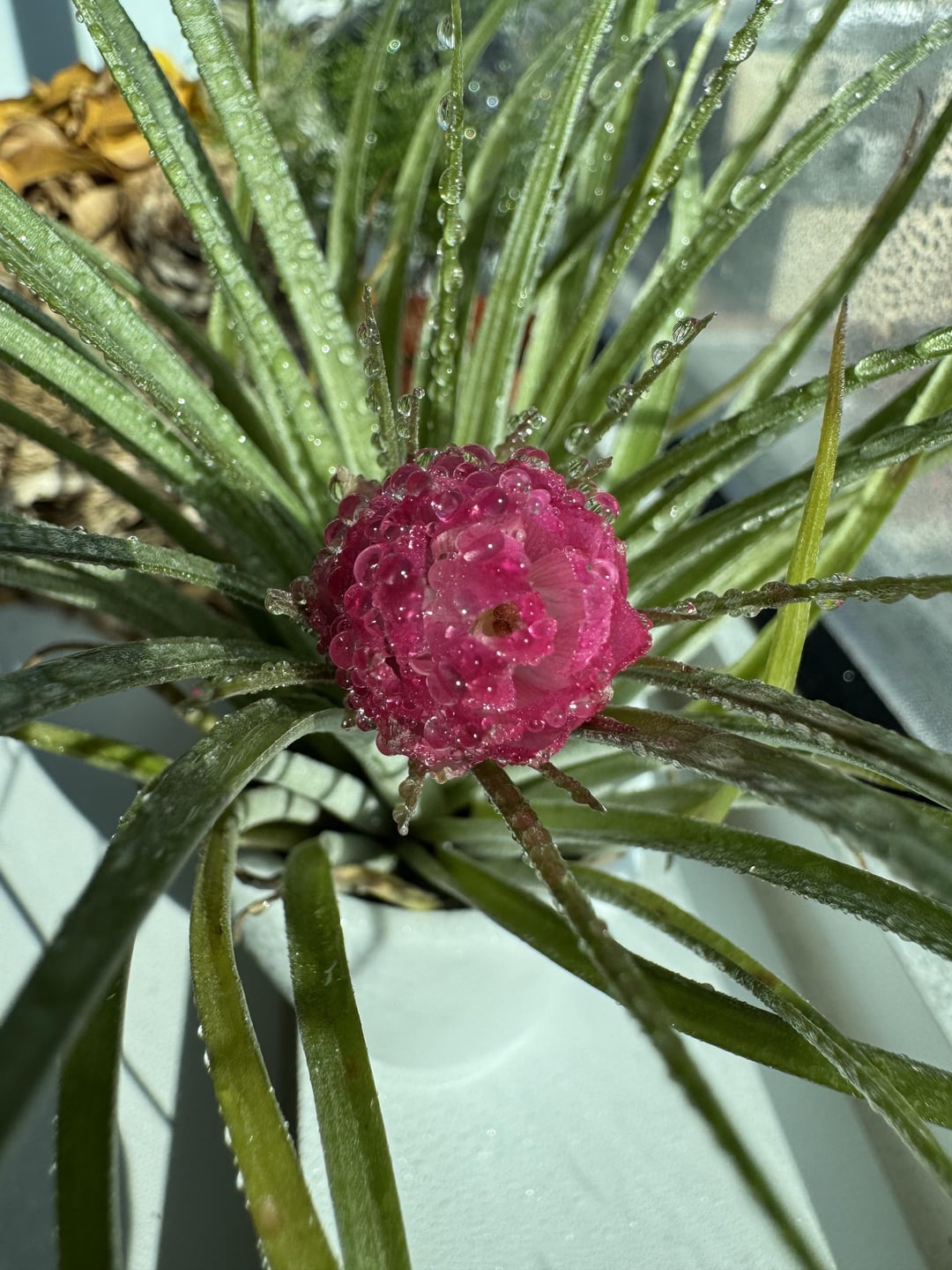 From what I’ve gathered, you should try to keep the bloom dry. If you soak, keep the bloom out of the water, and I’d block the bloom from getting wet while misting. (I’ve yet to have an airplant flower, but this is what I’ve come to understand from this sub)