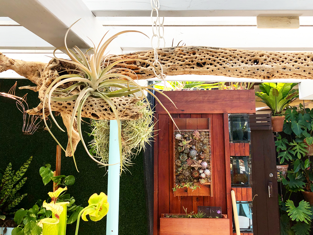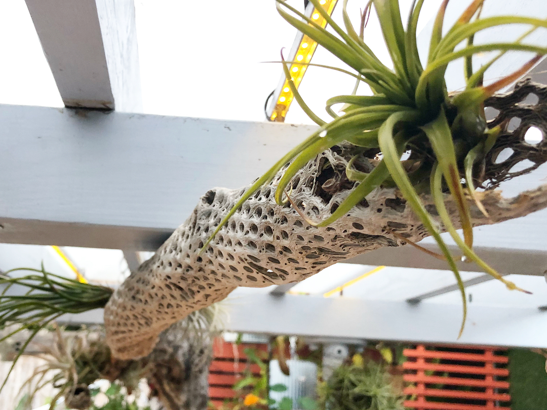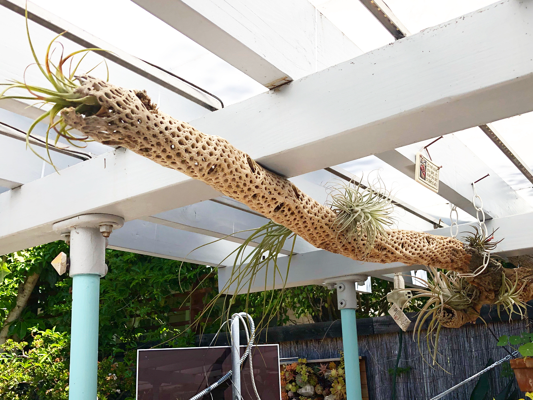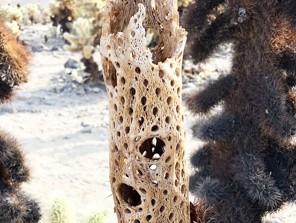 Driftwood doesn’t get much cooler looking than this. On a recent trip to the high desert near Joshua Tree National Park, we picked up a cholla cactus skeleton (its dried wood) for an interesting raised centerpiece in the arbor. Its perforations make a great place to tie and stick air plants. Check local nurseries in the area if you ever make a visit. We got this one at @cactus_mart where they sell it by the foot. Don’t find it yourself! It’s dangerous getting near teddy bear cacti when they are alive and it’s illegal to take driftwood from the park. #driftwood #teddybearcactus #chollacactus #cylindropuntiabigelovii 🌵🌵🌵#thehorticultgarden