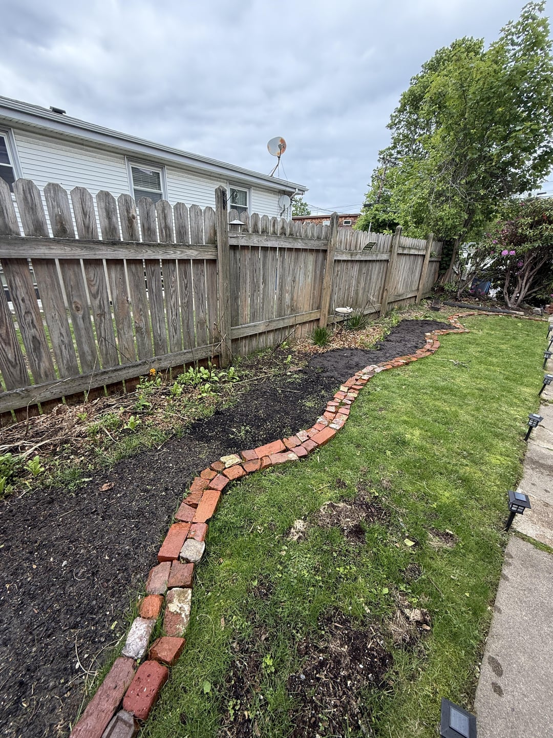 Most pictures are from last summer, but I added a few more feet this year with the bricks. Waiting for things to start growing now. Unfortunately weather has been rough here in MA until recently so very few things are blooming right now.