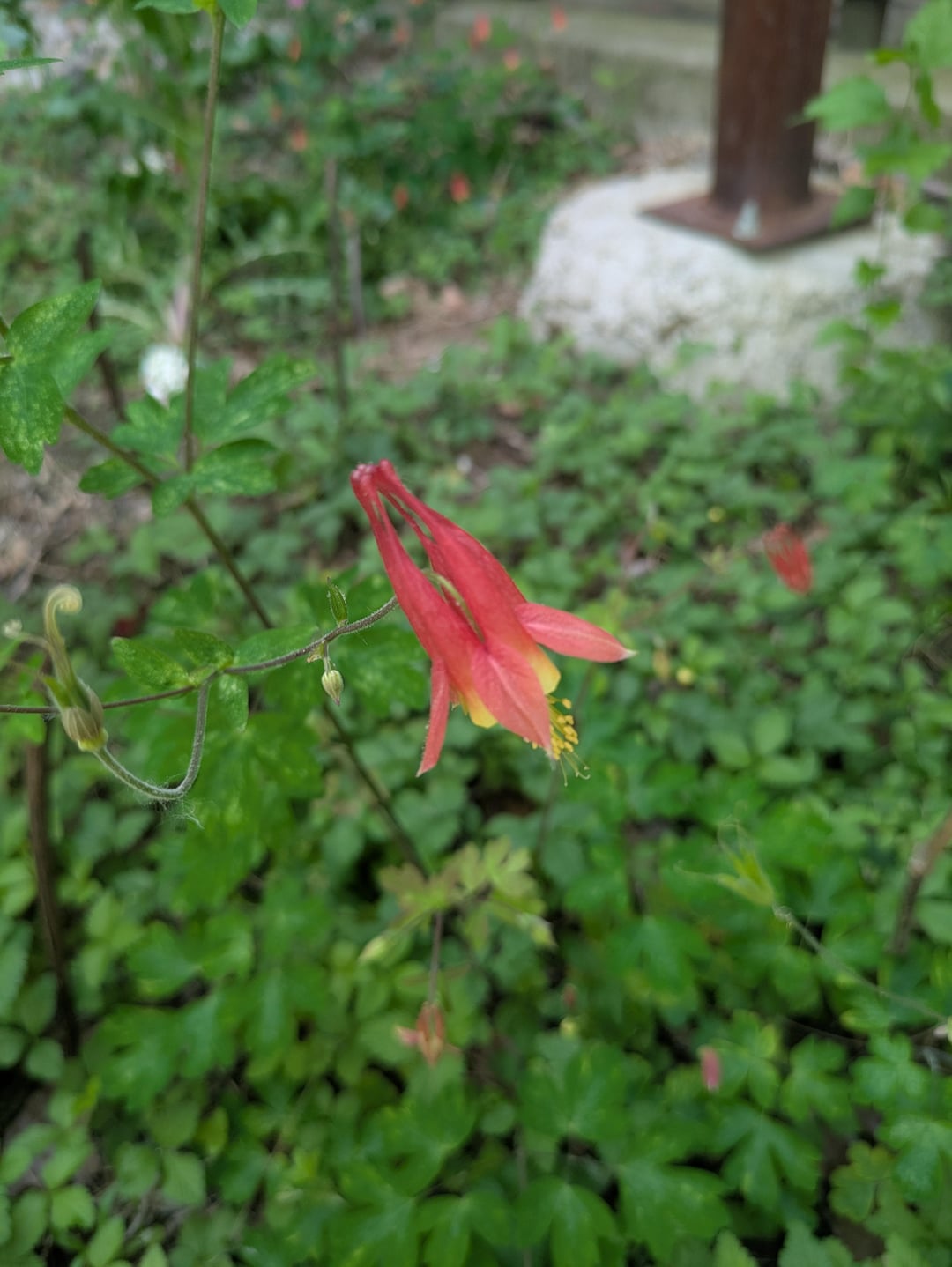 1 native columbine – perennial, volunteer, fertile. my favorite flower.