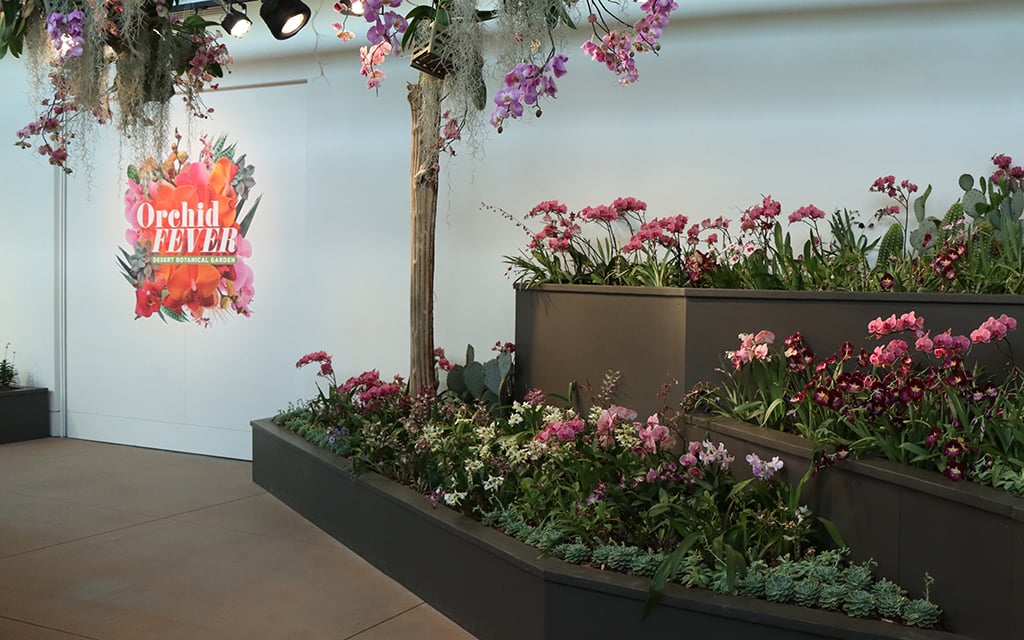 Boxes in the Orchid Fever Display at the Desert Botanical Garden in Phoenix feature displays of the propagation process on April 15, 2025. (Photo by Samantha Rea/Cronkite News)